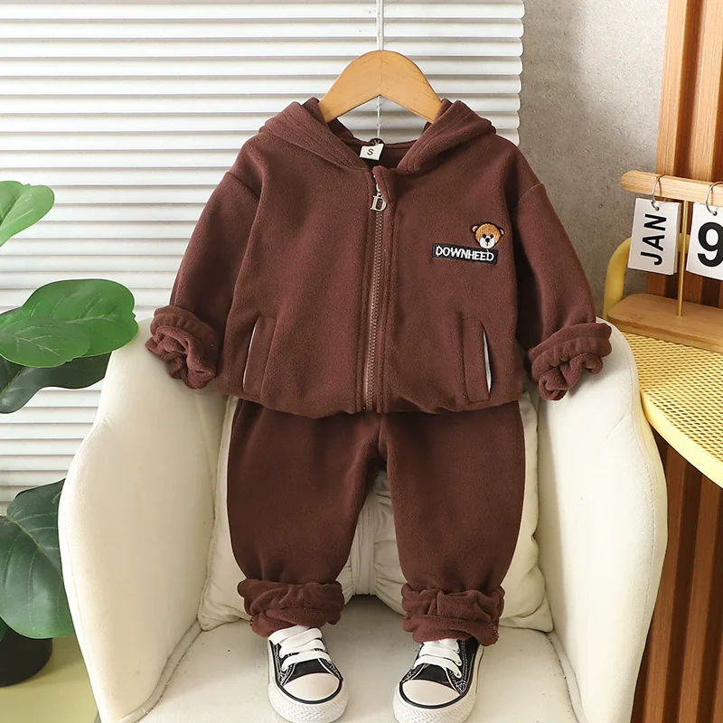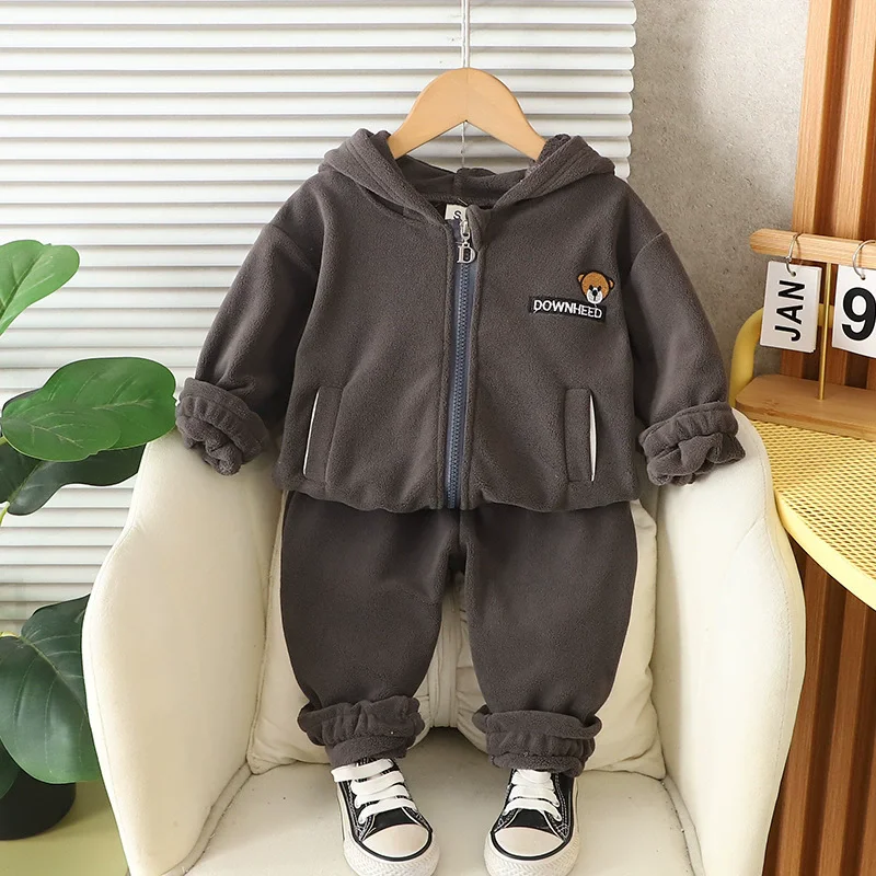 Ragazzi Ragazze In Pile Caldo Set Autunno Inverno Bambini Velluto Spesso Abbigliamento Vestito Del Bambino Cappotto Con Cappuccio + Pantaloni 2 Pezzi Tute Per Bambini Outfit 1Ragazzi Ragazze In Pile Caldo Set Autunno Inverno Bambini Velluto Spesso Abbigliamento Vestito Del Bambino Cappotto Con Cappuccio + Pantaloni 2 Pezzi Tute Per Bambini Outfit