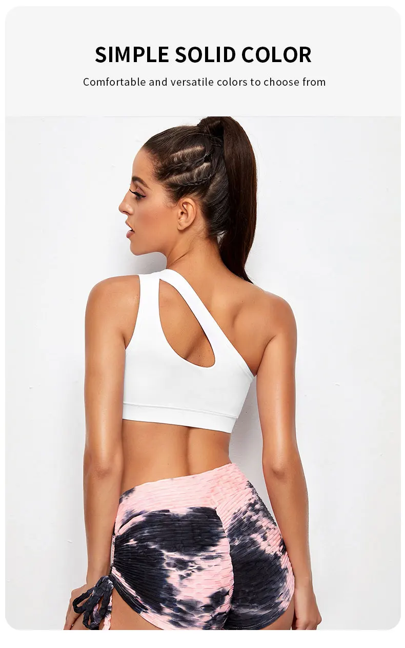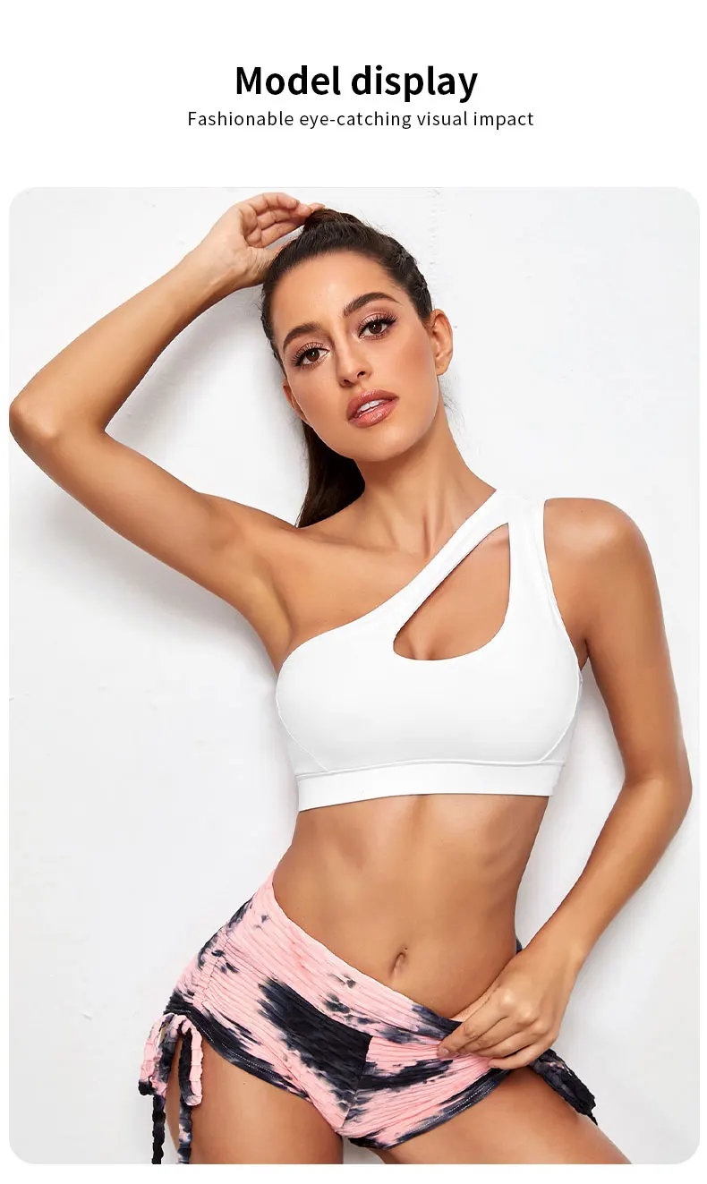 Il design a una spalla di questo reggiseno sportivo aggiunge un tocco elegante al tuo outfit da allenamento, facendovi risaltare in palestra o sul percorso di corsa.