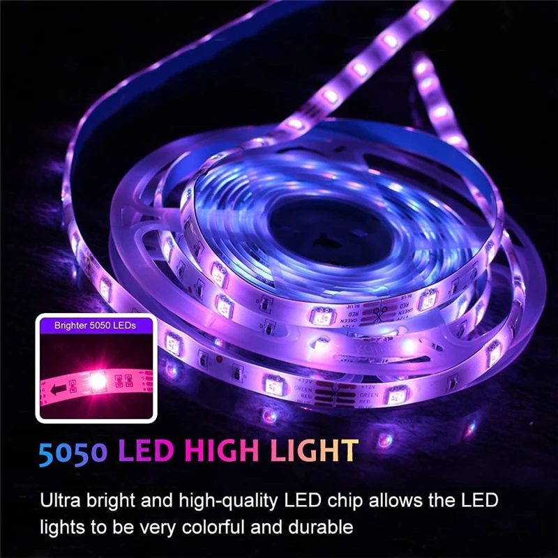 1. Striscia LED RGB SMD 5050 con scheda PCB nera, alta intensità e affidabilità.