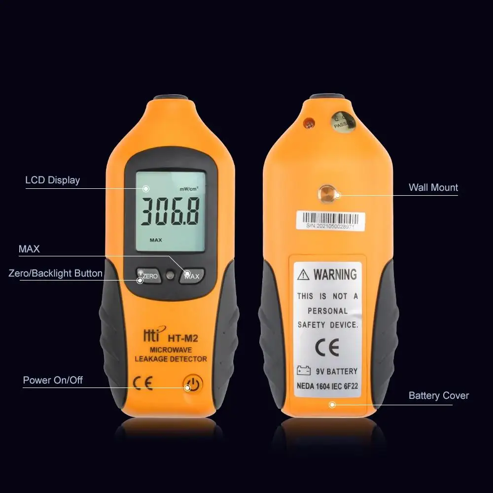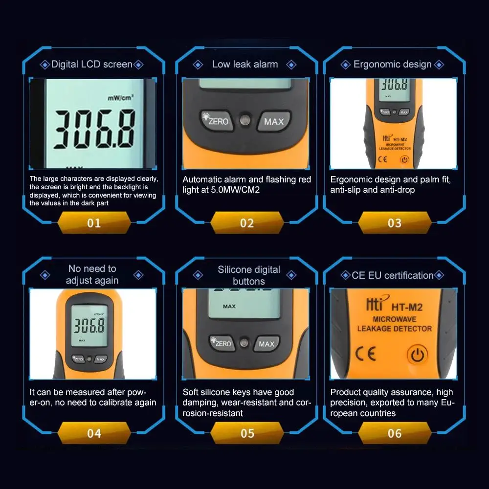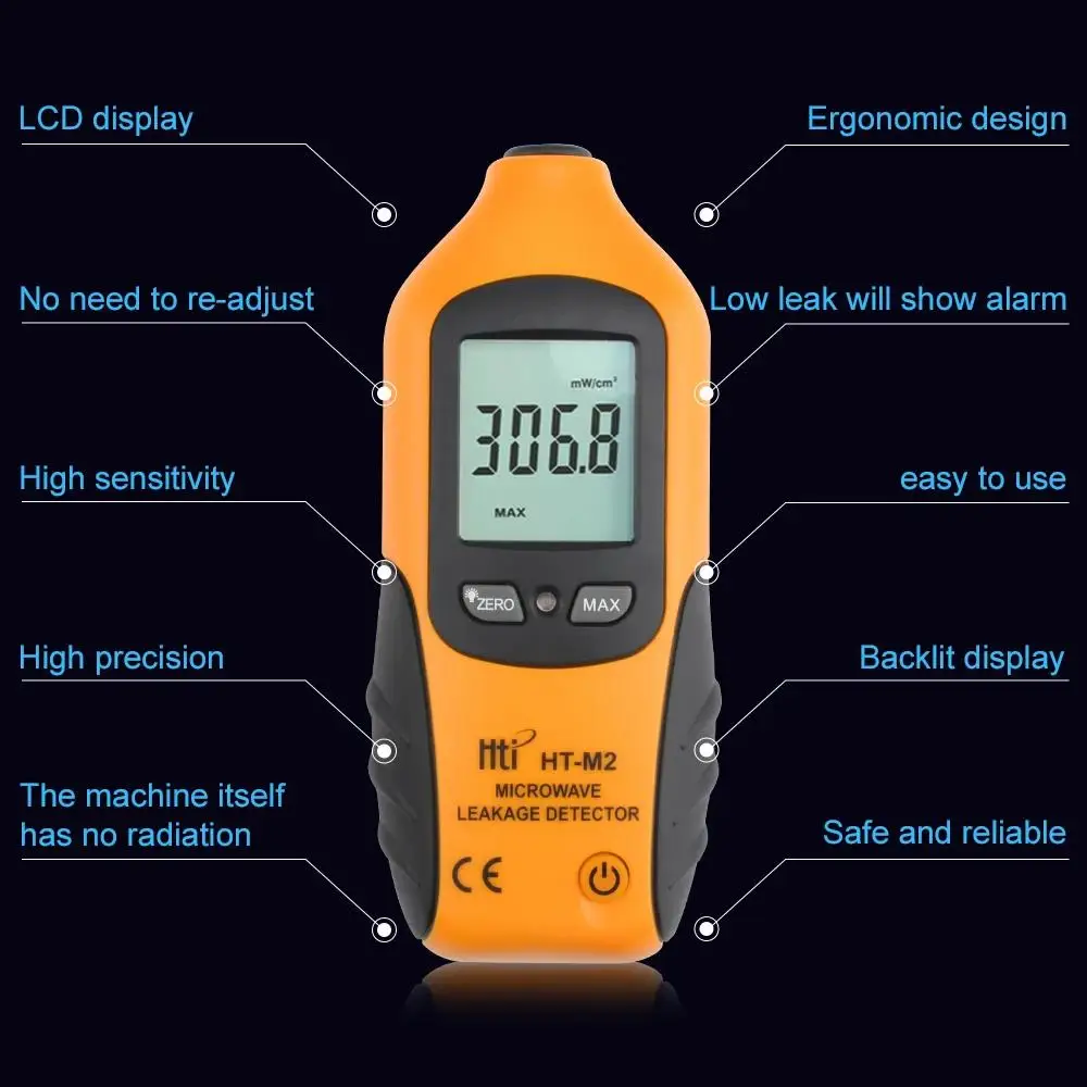 HTI HT-M2 rilevatore di perdite a microonde Display LCD digitale portatile retroilluminazione misuratore di radiazioni ad alta precisione 0-9.99mW/cm2