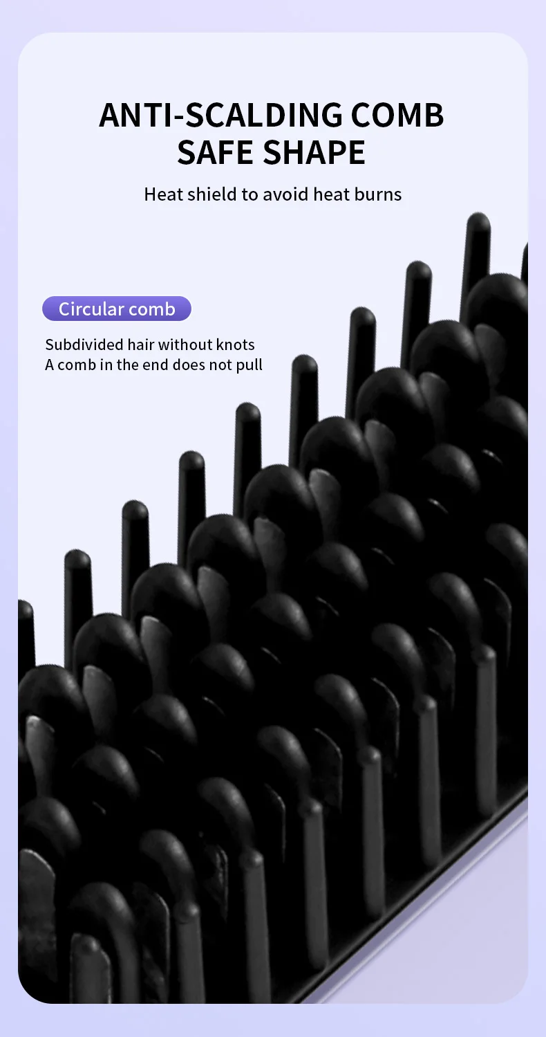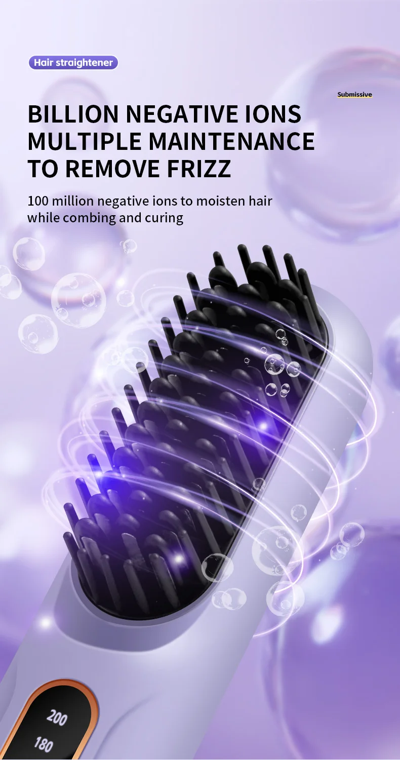 Riscaldamento elettrico Pettine per capelli lisci Schermo LCD USB Strumento per lo styling portatile senza fili agli ioni negativi Spazzola per lisciare ricaricabile