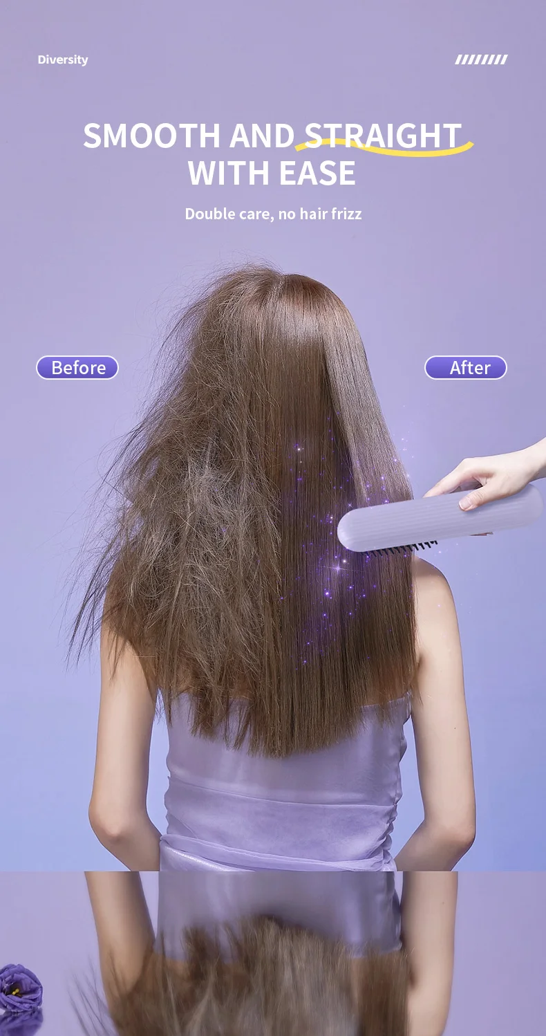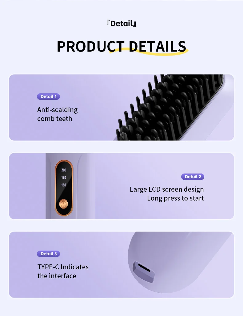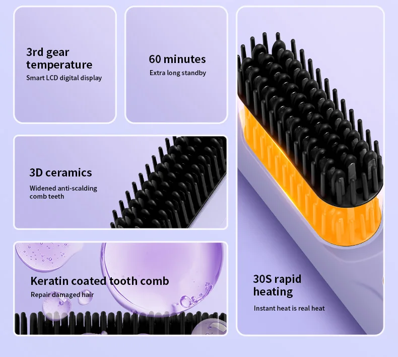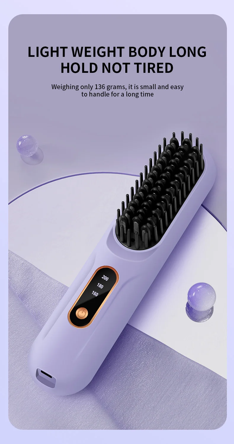 6 recensioni per Riscaldamento elettrico Pettine per capelli lisci Schermo LCD USB Strumento per lo styling portatile senza fili agli ioni negativi Spazzola per lisciare ricaricabile