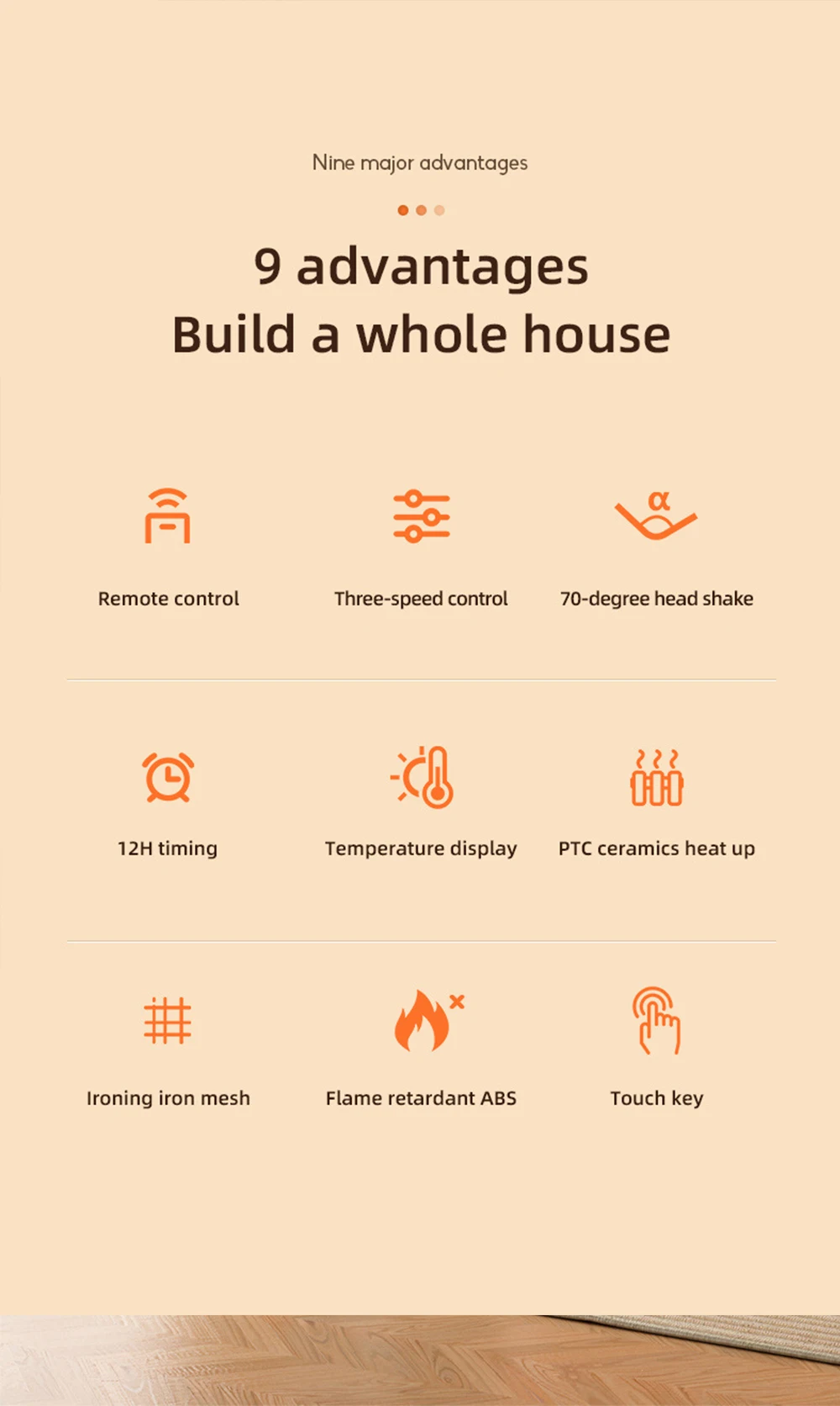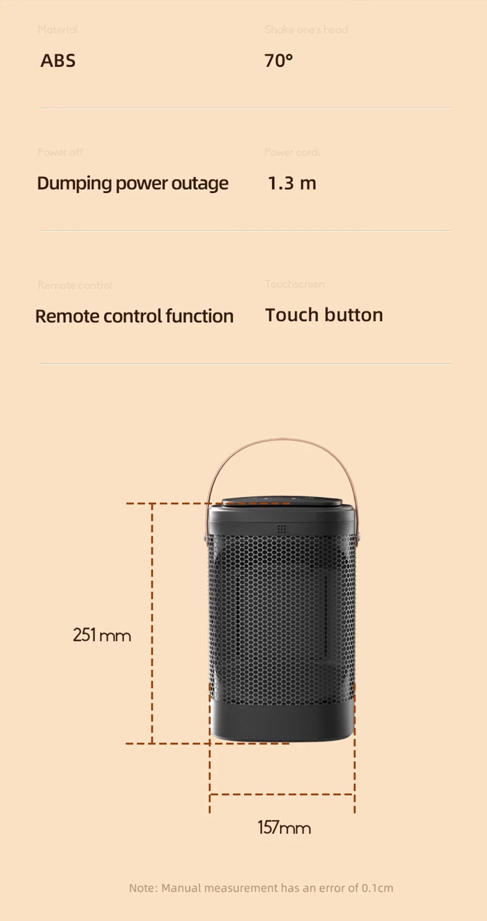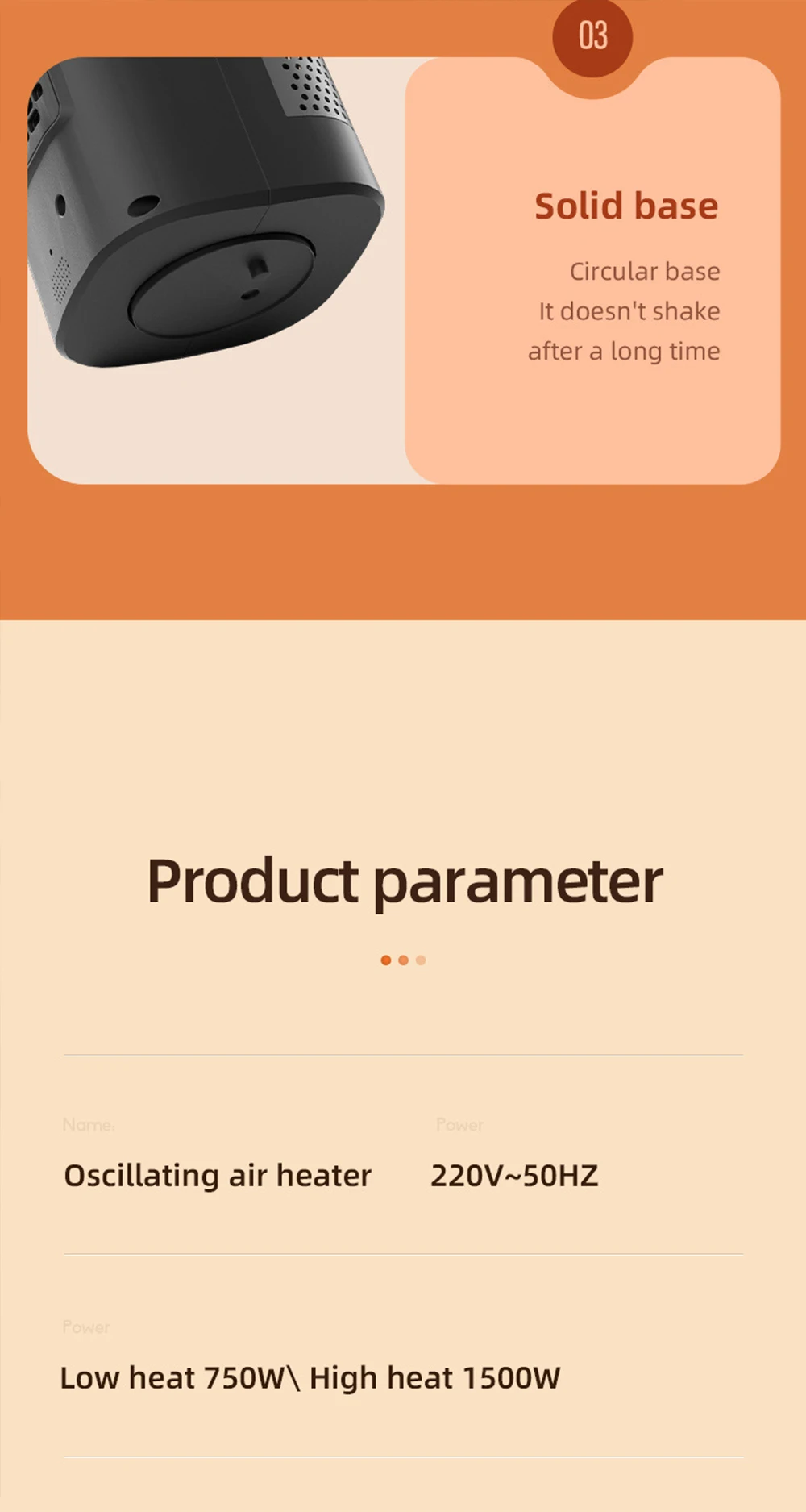Ampia copertura oscillante: con un angolo di oscillazione di 70 °, questo riscaldatore può riscaldare uniformemente un’area più ampia, garantire che il calore raggiunge ogni angolo della stanza.