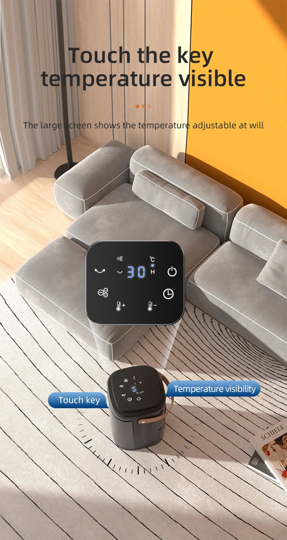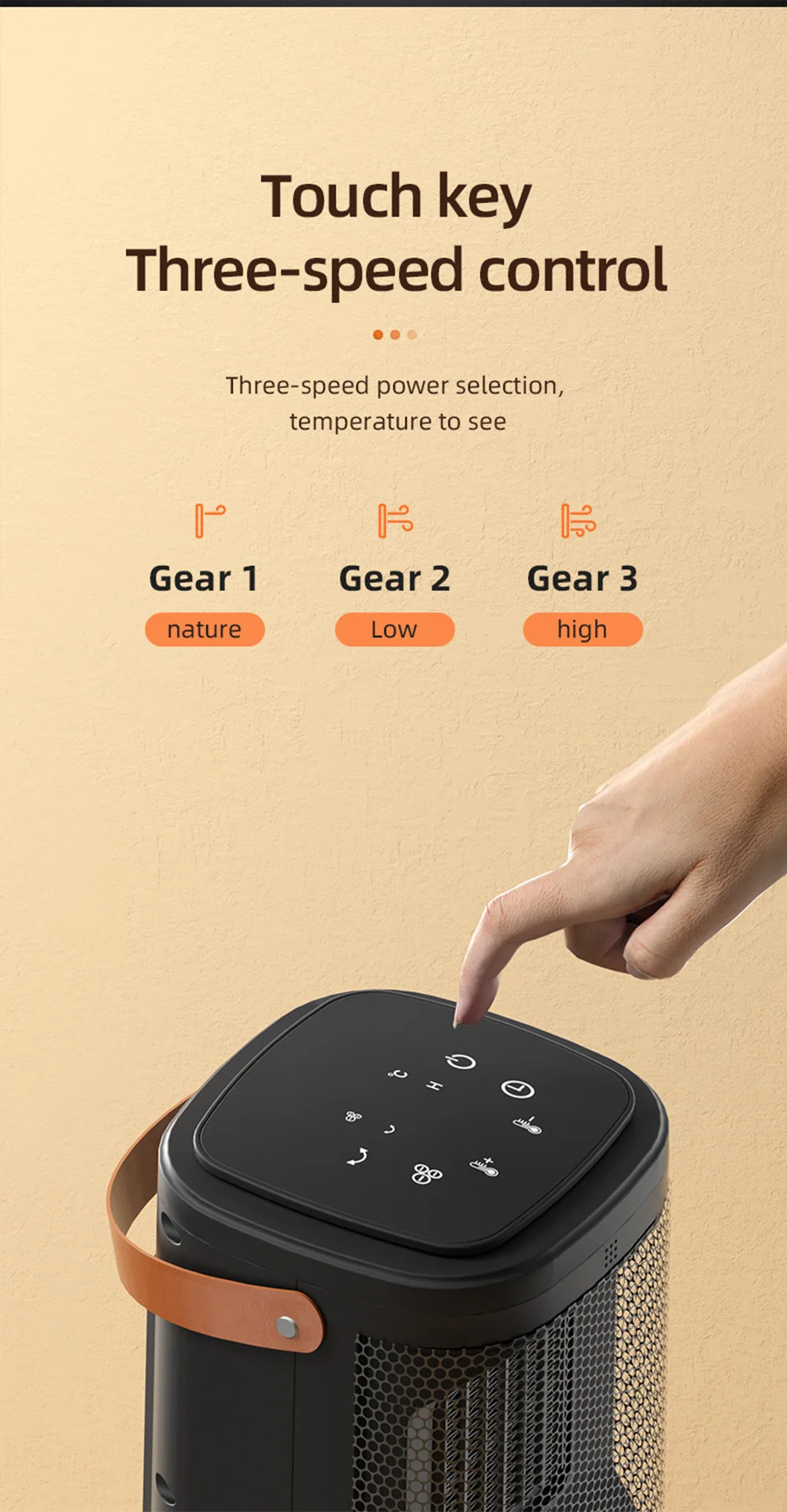 Design portatile per versatilità: compatto e portatile, questo riscaldatore è adatto a vari spazi come camere da letto, soggiorni e uffici, offre flessibilità e praticità.