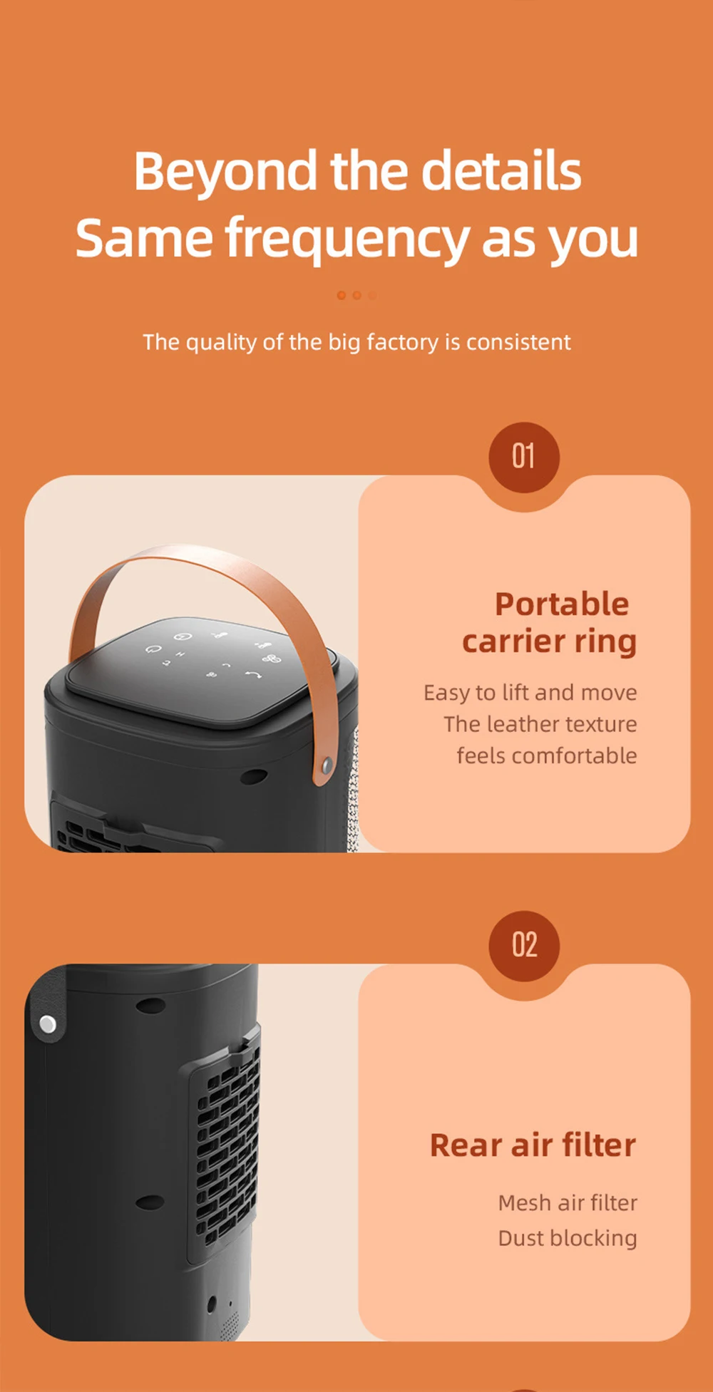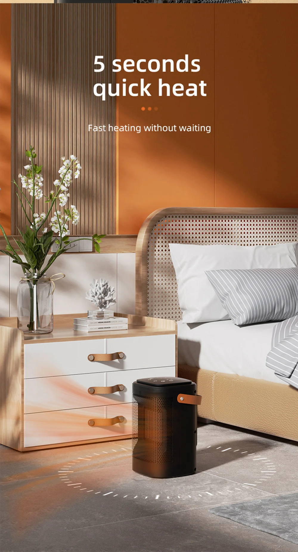 Riscaldamento rapido ad alta potenza: dotato di 1500w ad alta potenza, questo riscaldatore da tavolo può riscaldare rapidamente entro 5 secondi, fornendo calore a lunga durata nel tuo spazio.