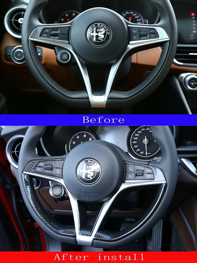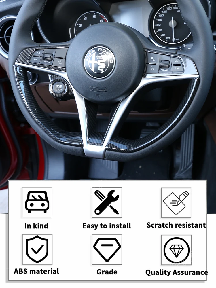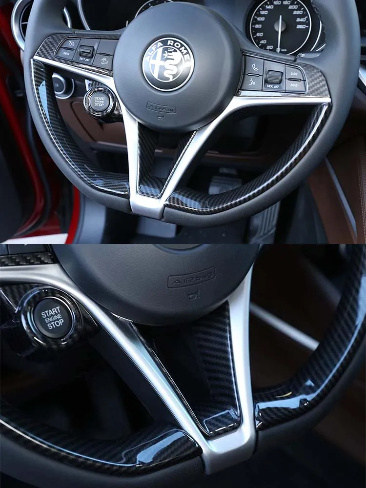 Rivestimento del coprivolante per auto in stile fibra di carbonio ABS per Alfa Romeo Giulia 2017 2018 2019 Accessori interni 1Rivestimento del coprivolante per auto in stile fibra di carbonio ABS per Alfa Romeo Giulia 2017 2018 2019 Accessori interni