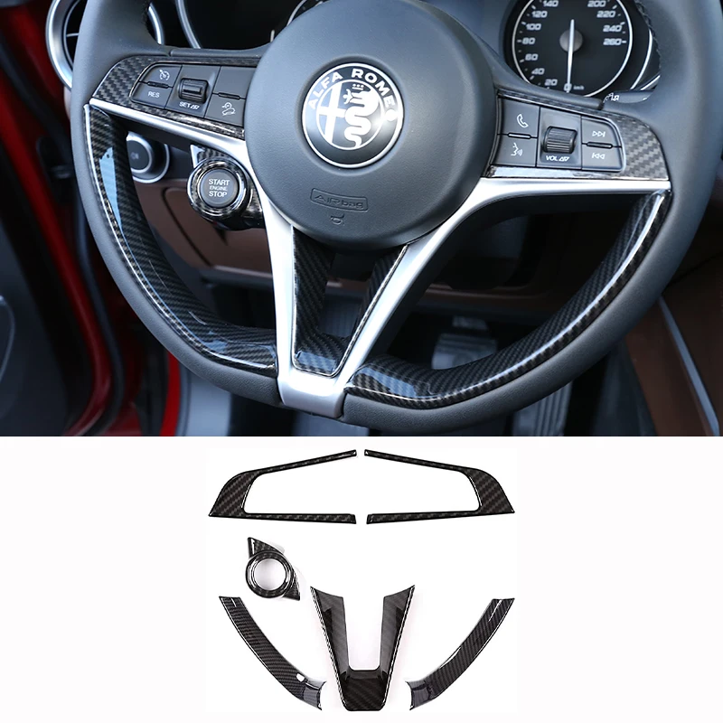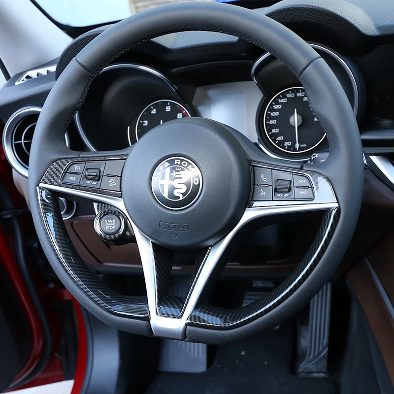 Rivestimento del coprivolante per auto in stile fibra di carbonio ABS per Alfa Romeo Giulia 2017 2018 2019 Accessori interni 1Rivestimento del coprivolante per auto in stile fibra di carbonio ABS per Alfa Romeo Giulia 2017 2018 2019 Accessori interni