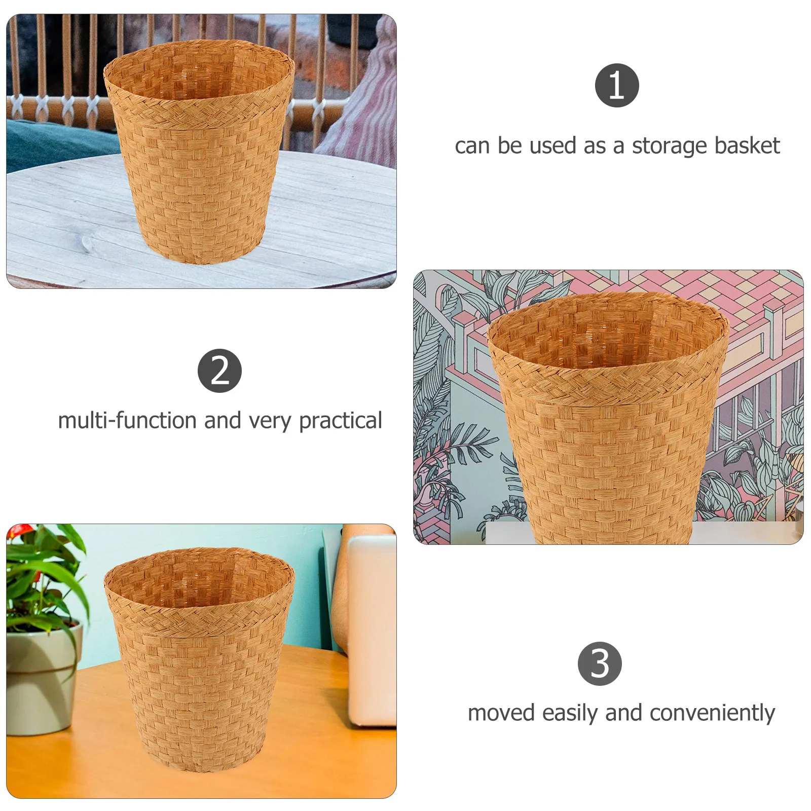 Pattumiera intrecciata a mano in paglia di rattan Cestino portaoggetti per articoli vari Rifiuti per camera da letto Bagno versatile Secchio portaoggetti per lavanderia Cestino portaoggetti per la casa