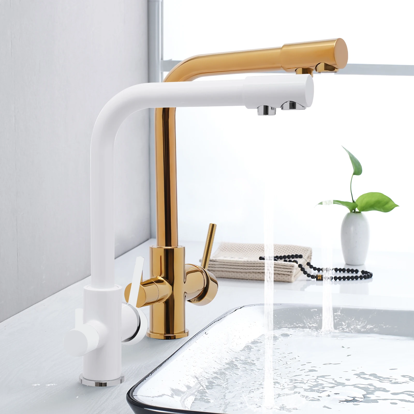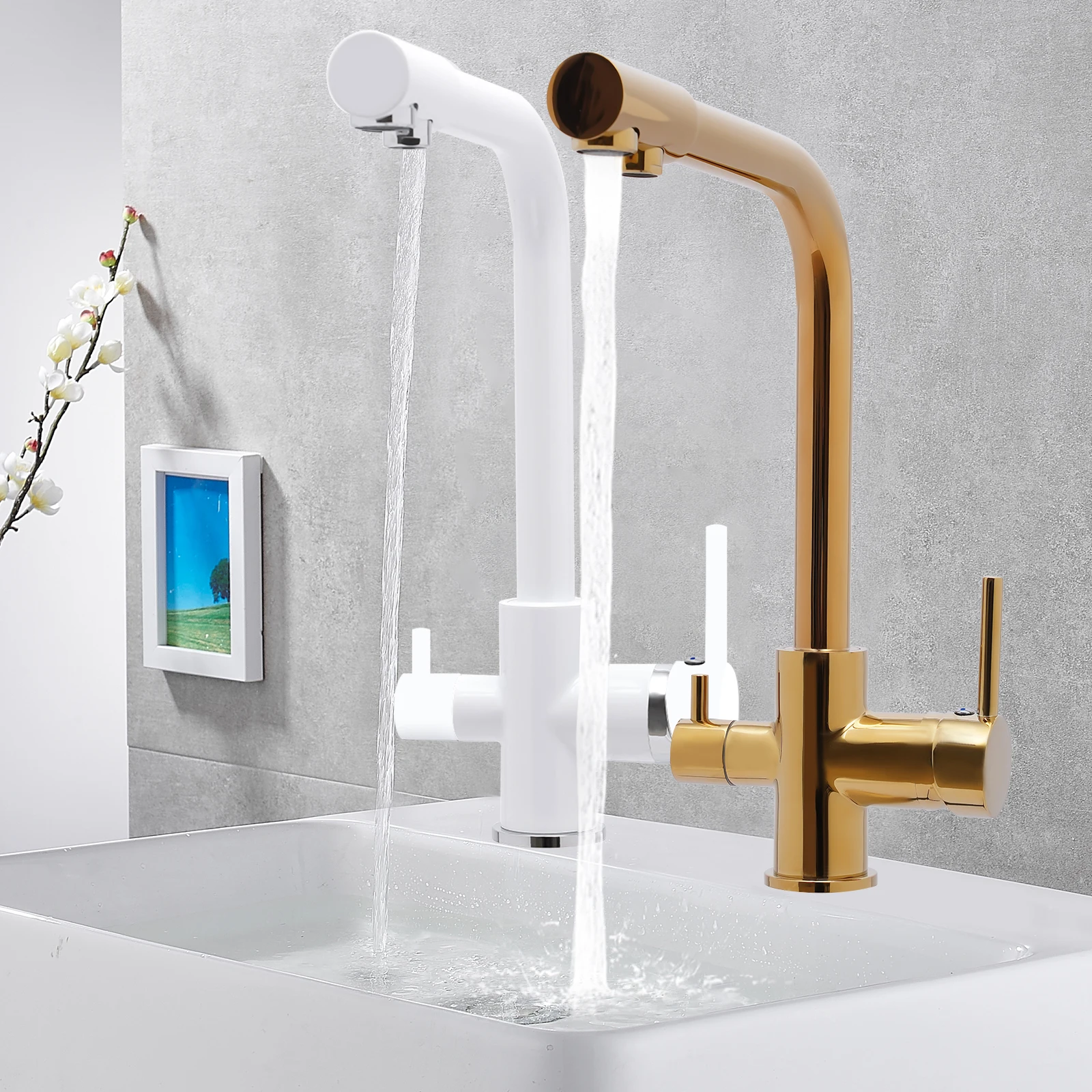 Rubinetto da cucina a 3 vie bianco/oro Rubinetto da appoggio in acciaio inossidabile adatto per case, ristoranti, hotel, cucine