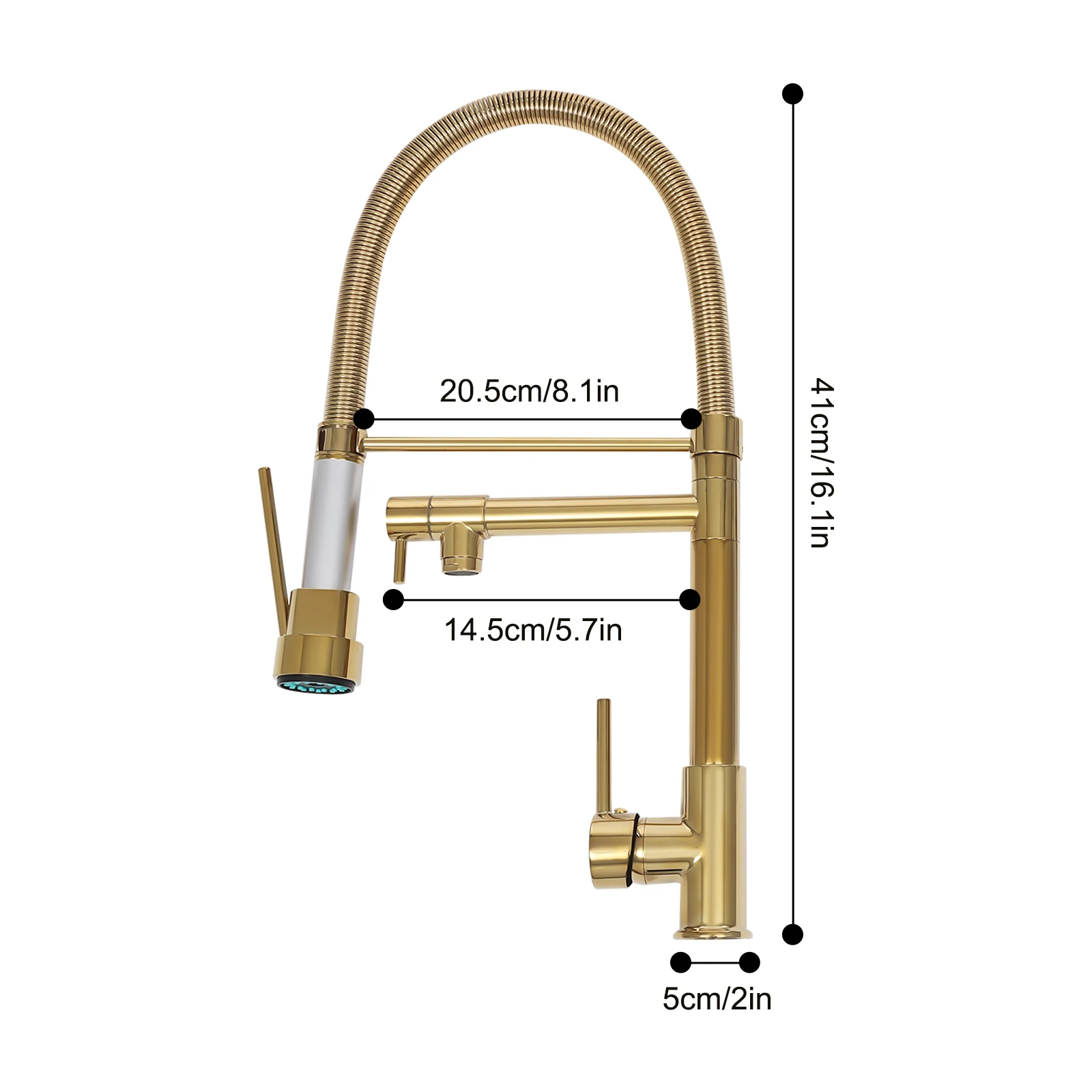 Molla compatta: Il design a molla rende il prodotto più flessibile da utilizzare, prendi la conto rotazione di 360 gradi e curvatura di 360 gradi, che si rivolge facilitano al cambiamento della curvatura del tubo con meno sforzo e dando la gamma completa del rubinetto della cucina.