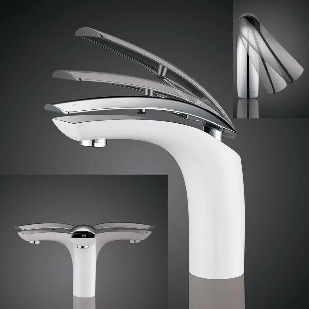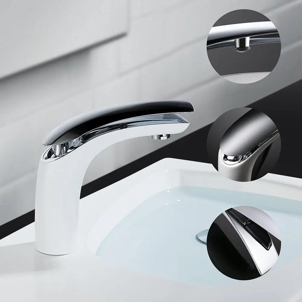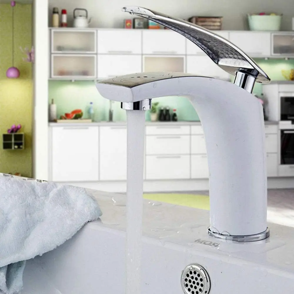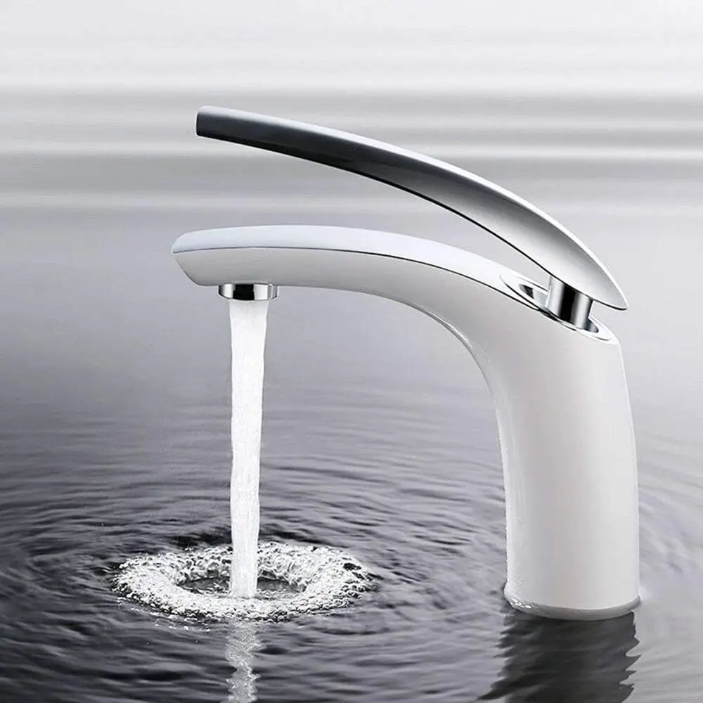 Rubinetto miscelatore monocomando per lavabo Rubinetto per bagno bianco per lavabo da bagno Maniglie per miscelatore acqua calda fredda con lega di zinco 1Rubinetto miscelatore monocomando per lavabo Rubinetto per bagno bianco per lavabo da bagno Maniglie per miscelatore acqua calda fredda con lega di zinco