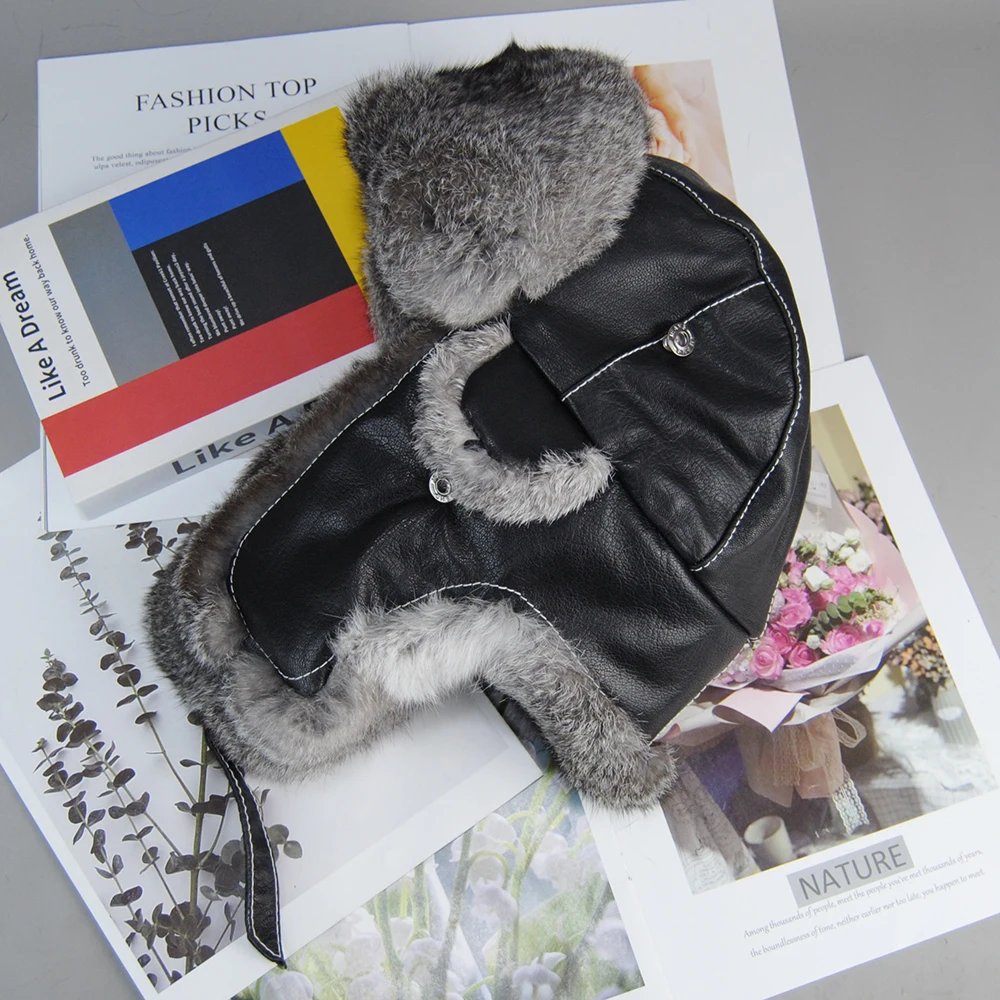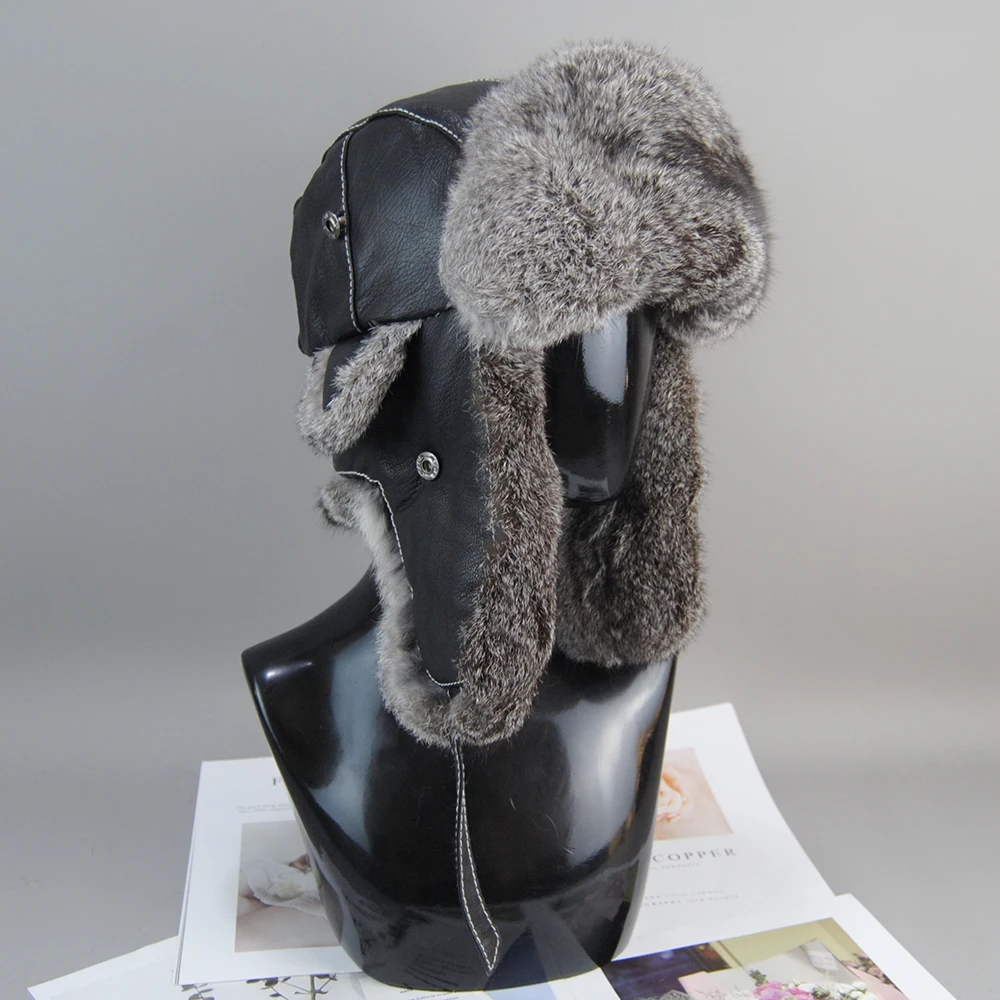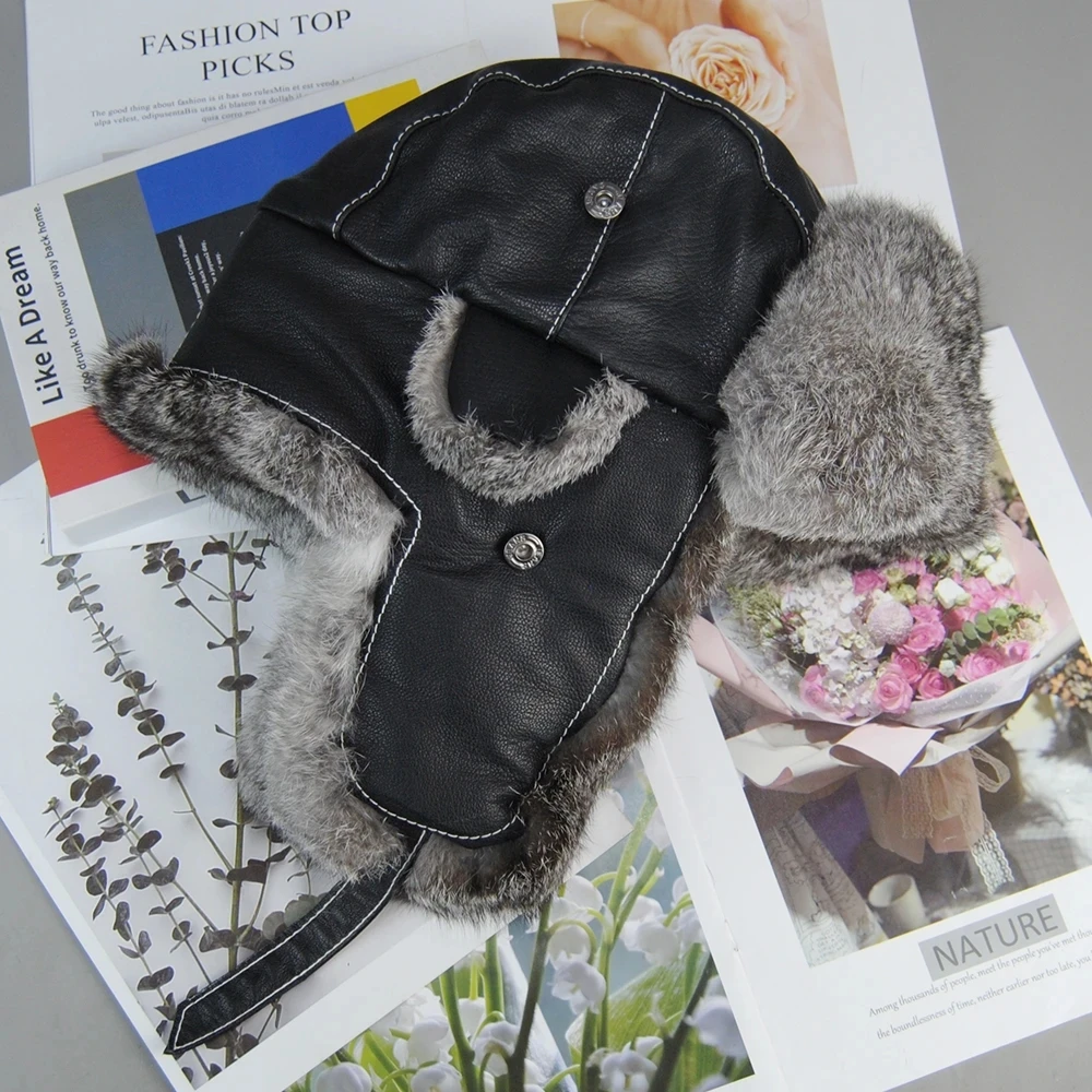 Materiale della pelliccia: 100% vera pelliccia di coniglio naturaleMateriale in pelle: 100% vera pelle di pecoraMisura del cappuccio: regolabile 55-57 cm 57-59 cm 59-61 cmahanериал меха: 100% наimpressionральныйех кролика.ahanериал кожи: 100% наimpressionральная овечья кожа.Camicieзмер шапки: регулируемый 55-57 см 57-59 см 59-61 см
