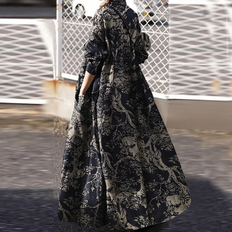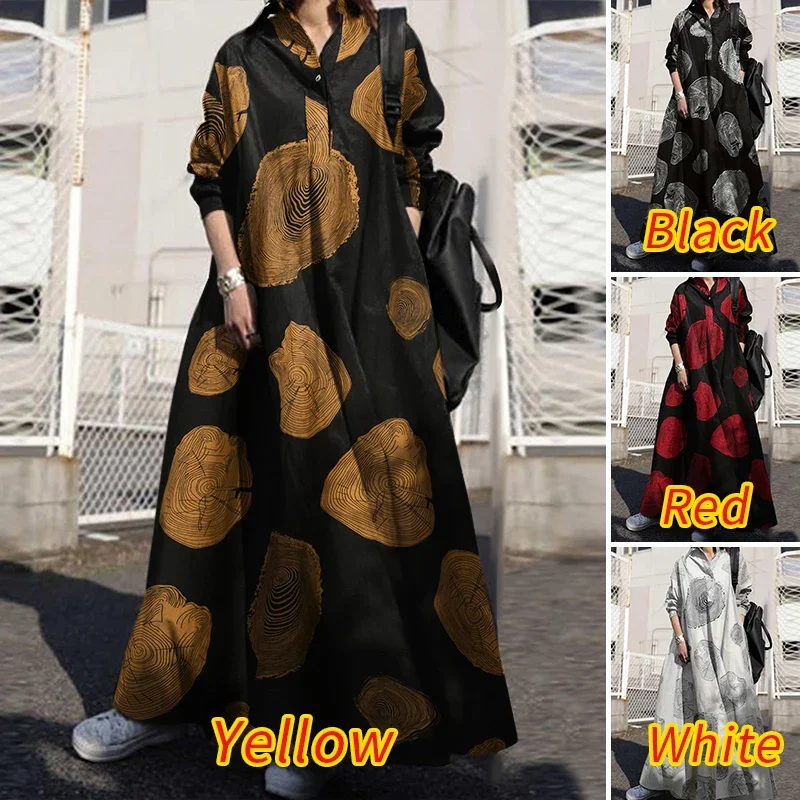 S-3XL Camicia con bottoni vintage Abito da donna Autunno in cotone e lino Vestito estivo Manica lunga Maxi Vestido Donna Casual Bagyy Robe Femme