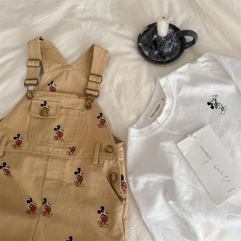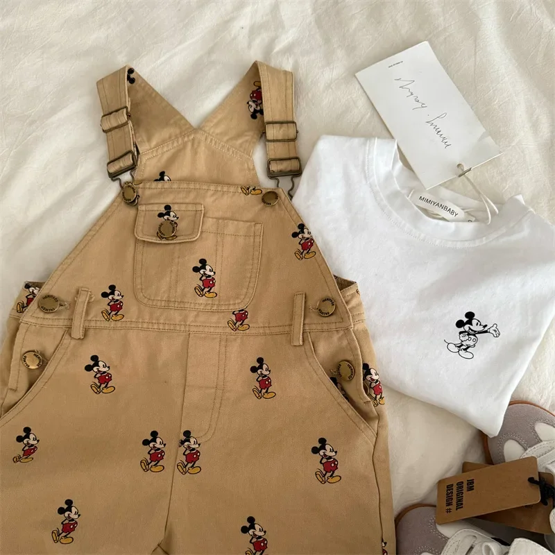 Salopette per bambini Topolino Primavera Autunno Neonati e ragazze Pantaloni con bretelle larghi Pantaloni con spalline con stampa di Topolino dei cartoni animati