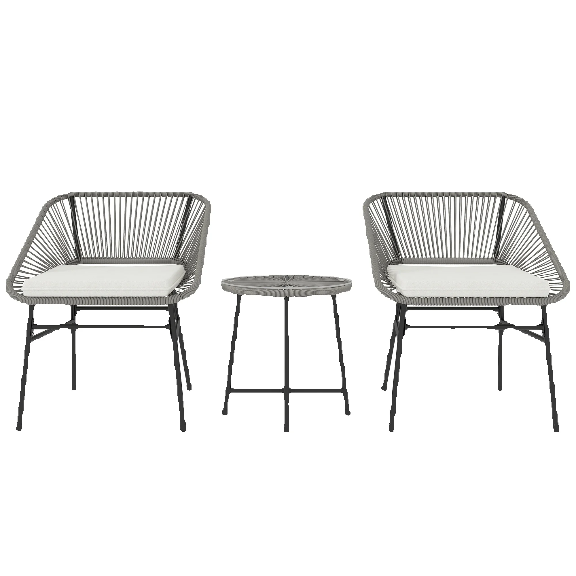 Una sedia ha un sedile imbottito, un schienale ergonomico e braccioli a treccia leggermente inclinati per un comfort ottimale. Questo set tavolo e sedie da esterno è ideali per balcone, giardino, patio, piscina o terrazza.