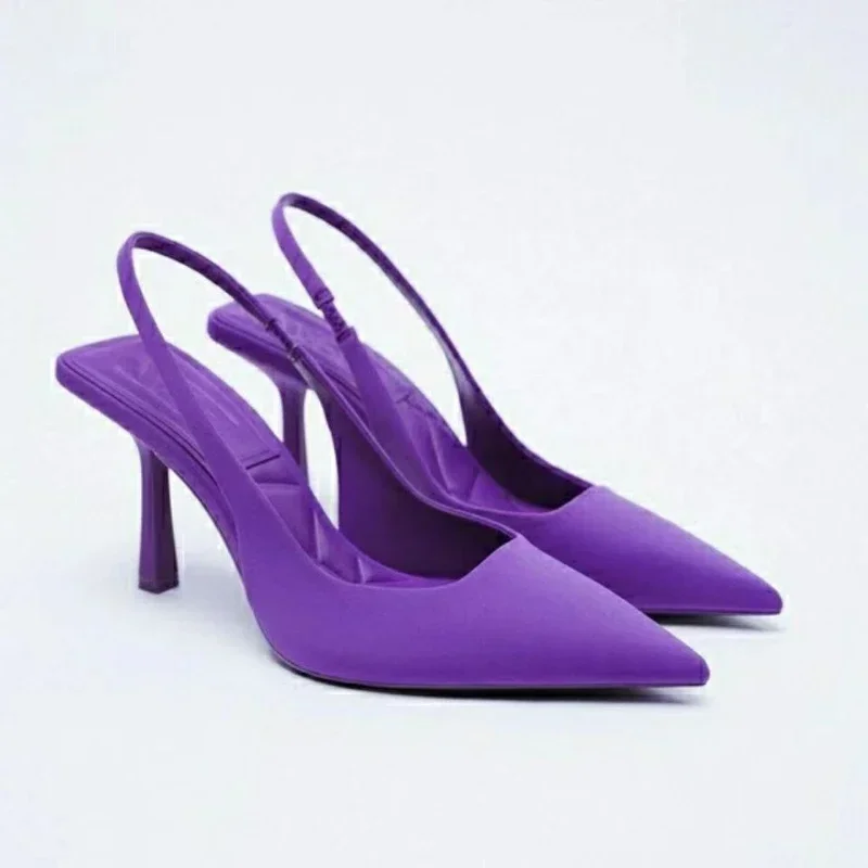 Sandali con tacco da donna estivi Sandali con cinturino alla caviglia a punta rossa Scarpe Tacchi a spillo da donna con tacco a spillo verde nero viola per feste