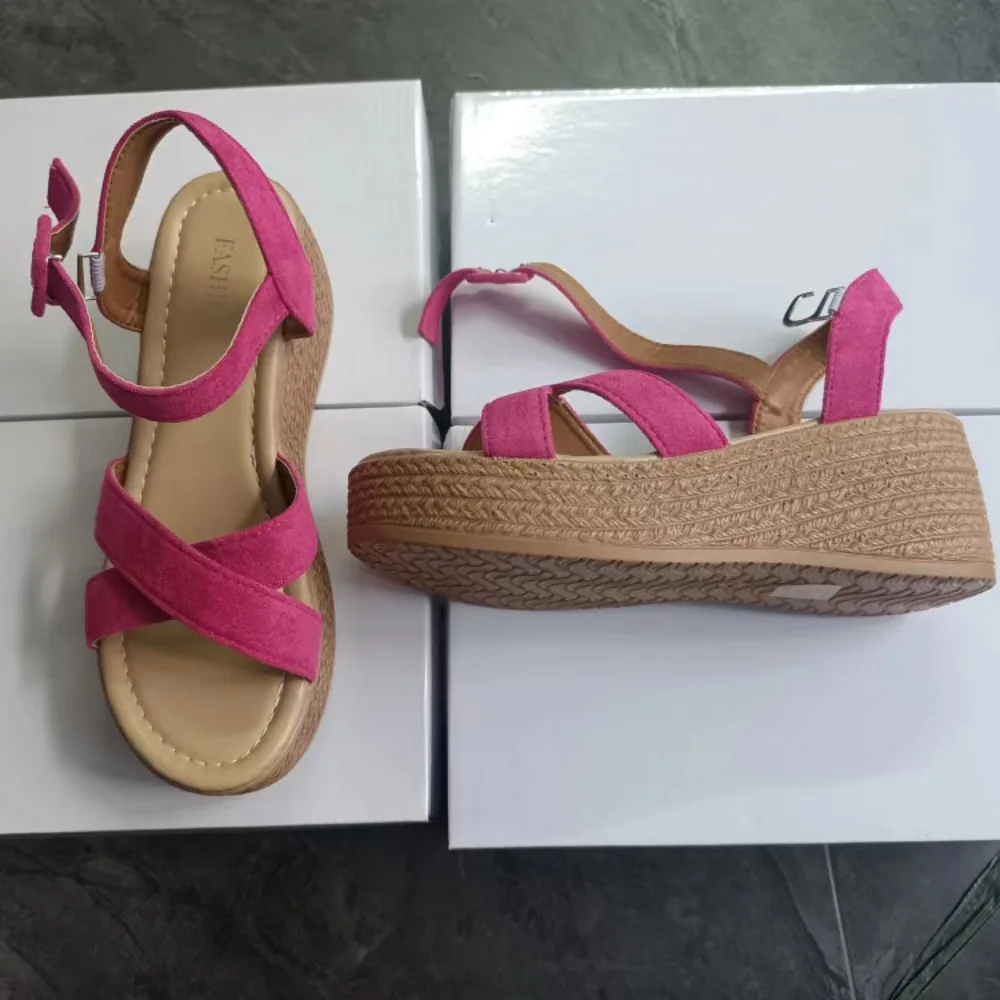 Sandali da donna con zeppa da 7 cm, nuova piattaforma di moda estiva, fibbia inferiore spessa, scarpe da passeggio comode e casual