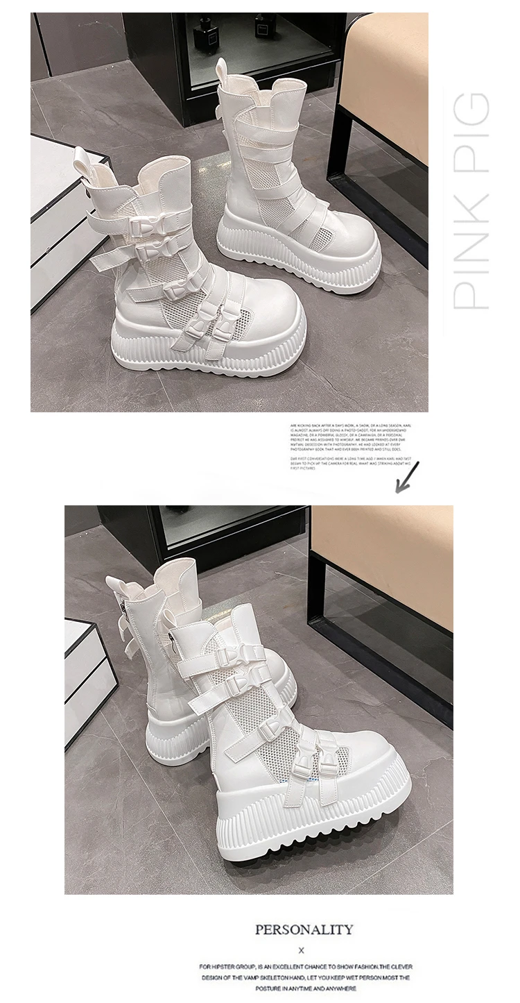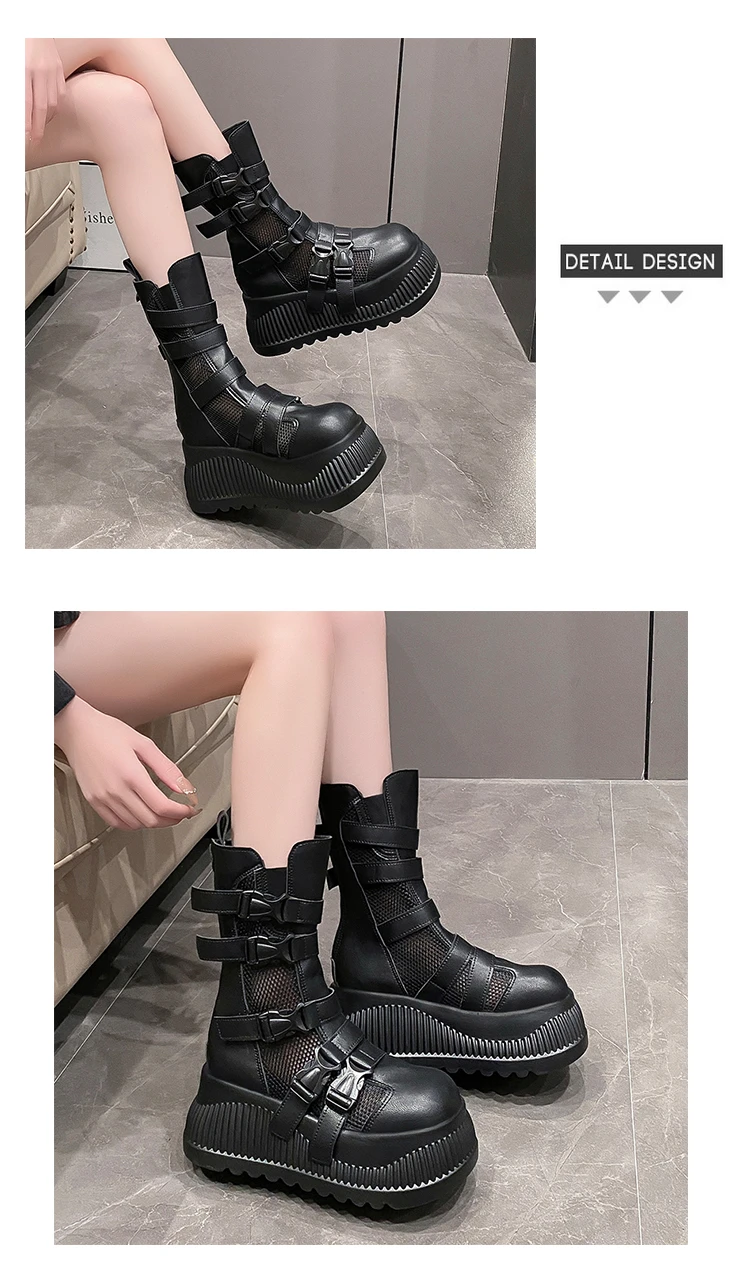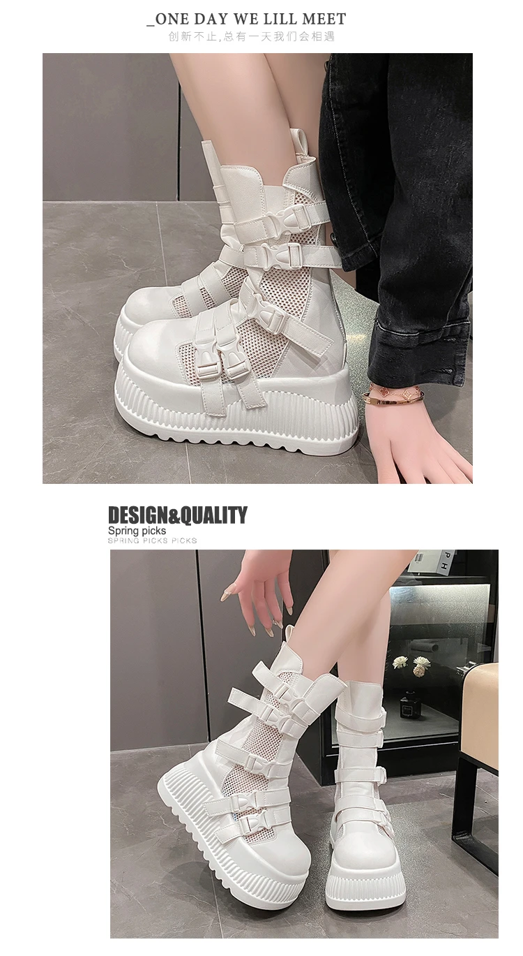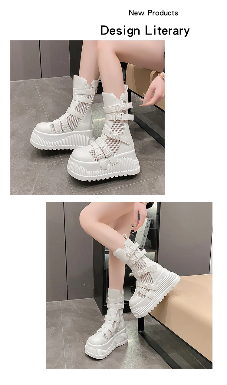 Sandali da donna estivi retrò centinaia maglia cava traspirante testa di panino suola spessa abbigliamento casual stivali alti freddi Zapatos De Mujer