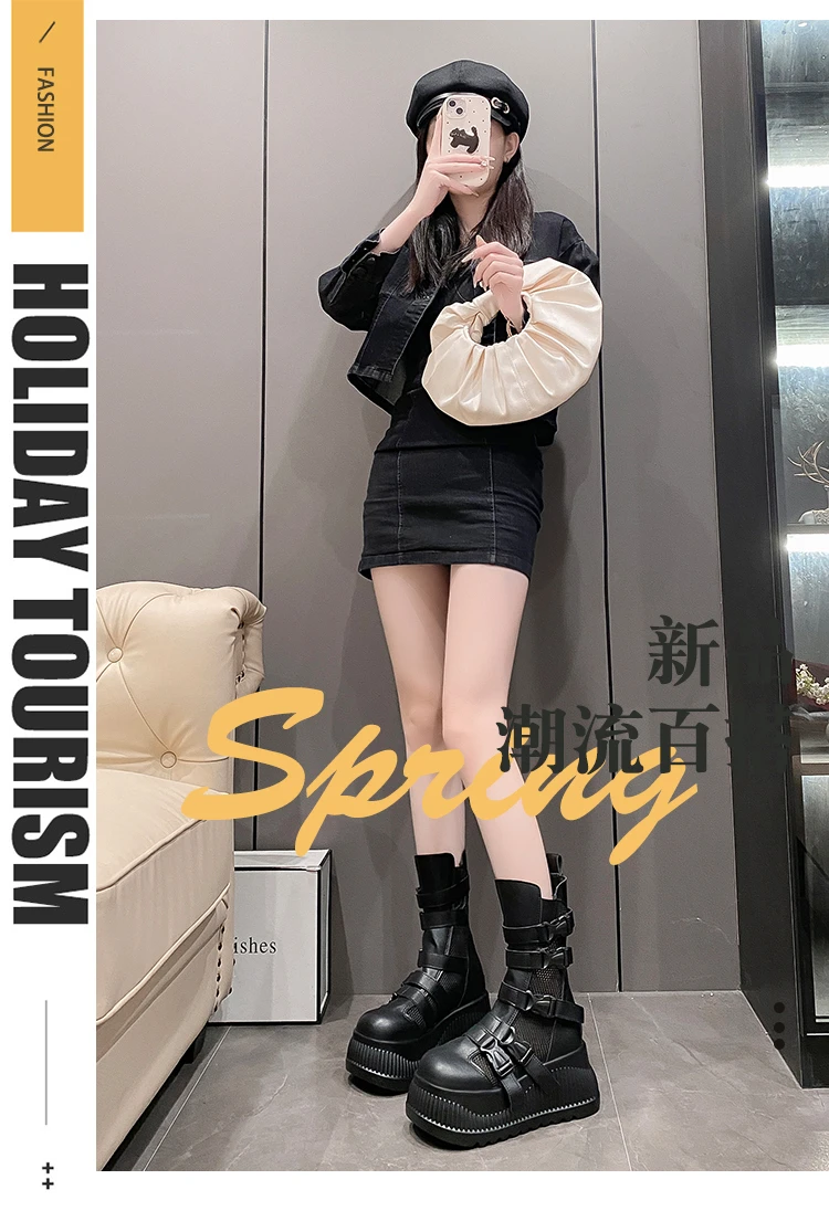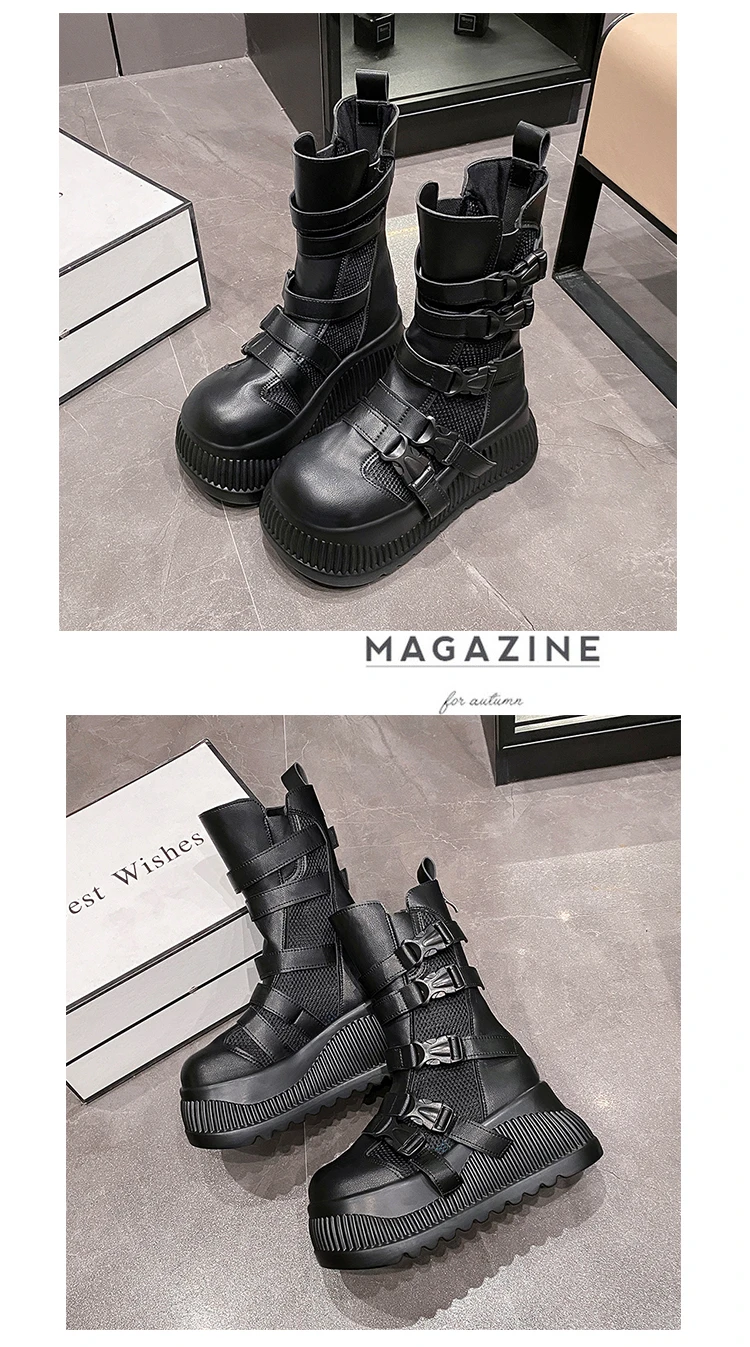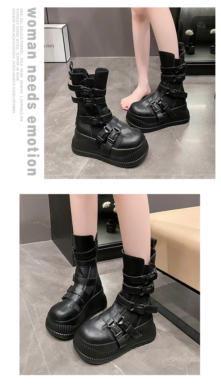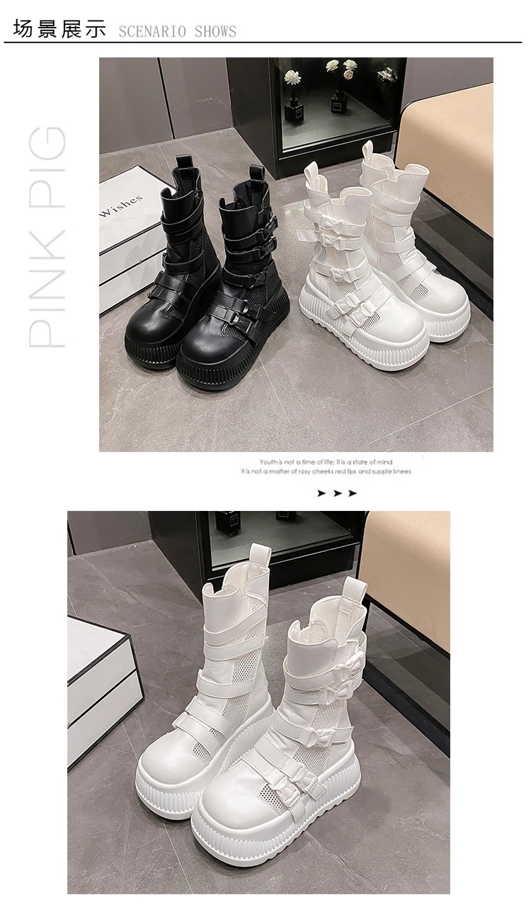 Sandali da donna estivi retrò centinaia maglia cava traspirante testa di panino suola spessa abbigliamento casual stivali alti freddi Zapatos De Mujer