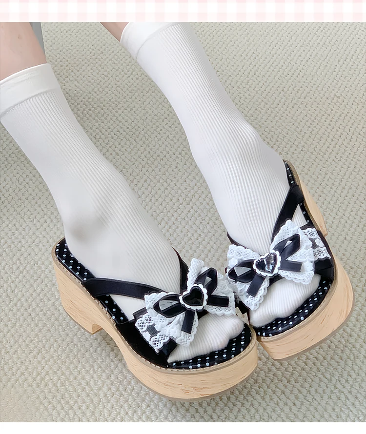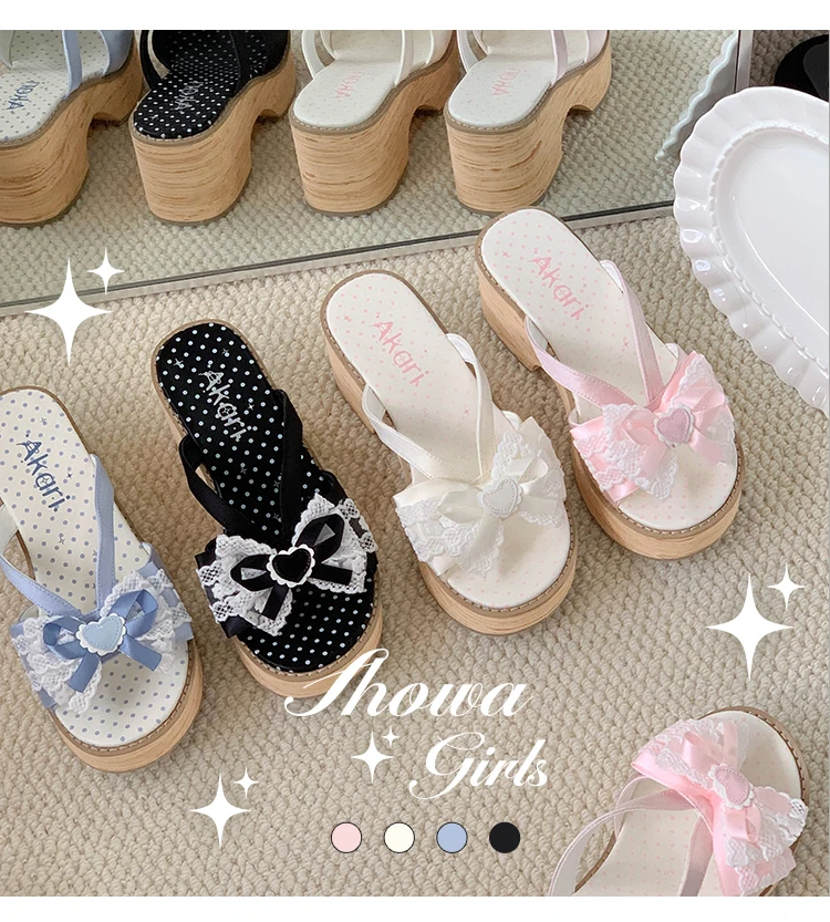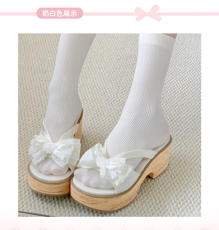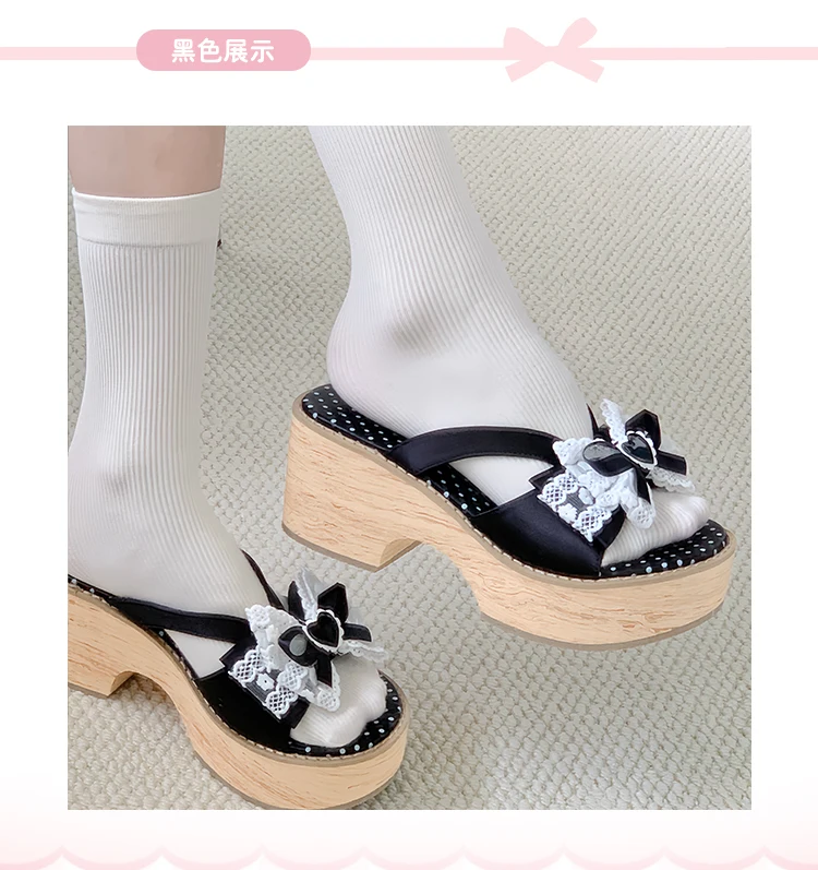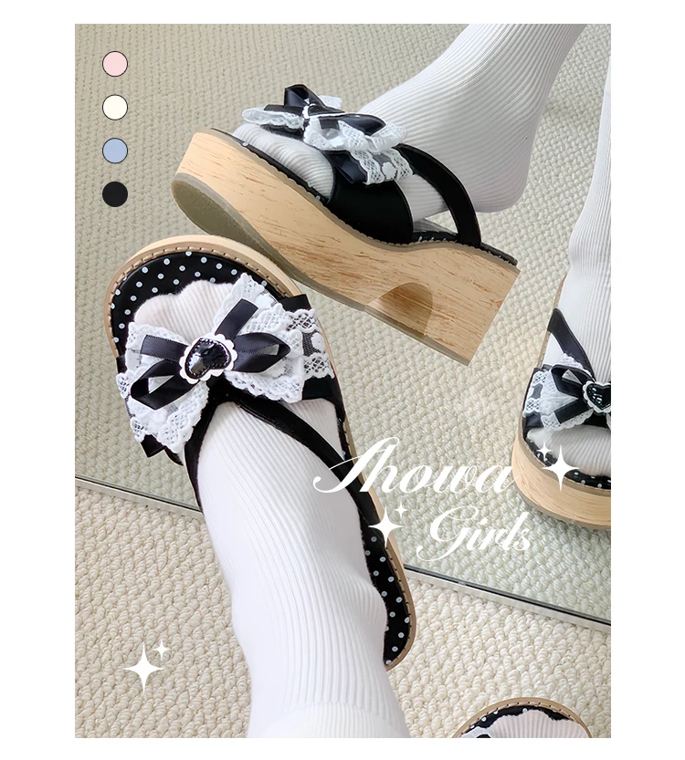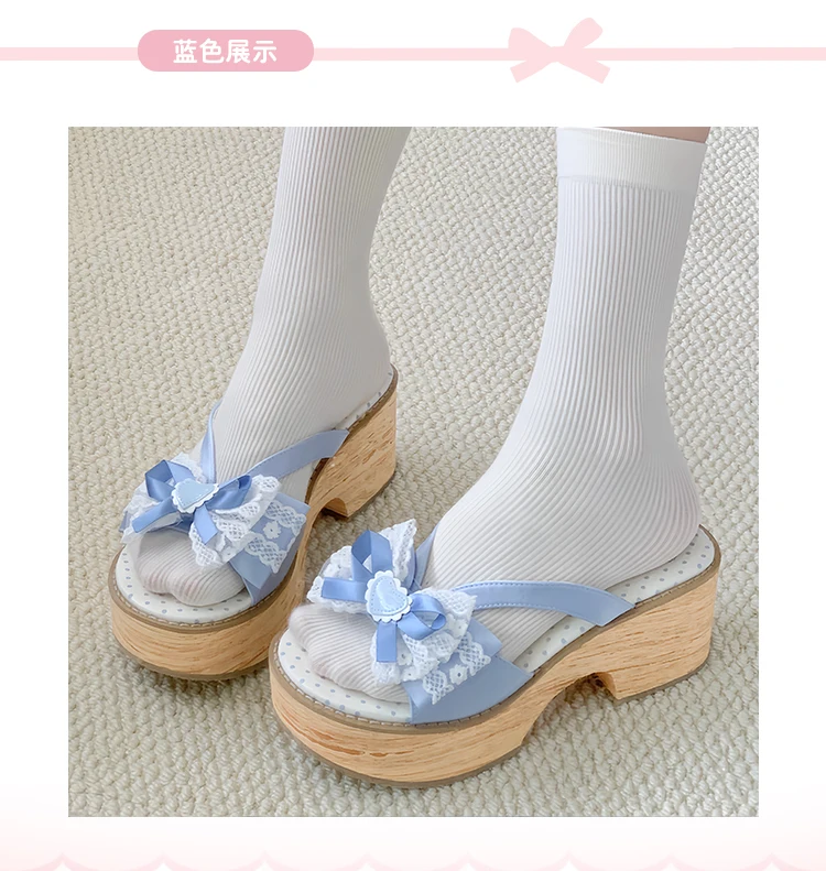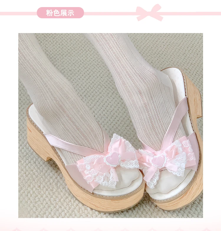 Sandali Lolita Scarpe Pantofole con zeppa con zeppa Innalzamento Versione con fiocco Kawaii Zoccoli Scarpe Ragazze Cos Tacchi per donne giapponesi