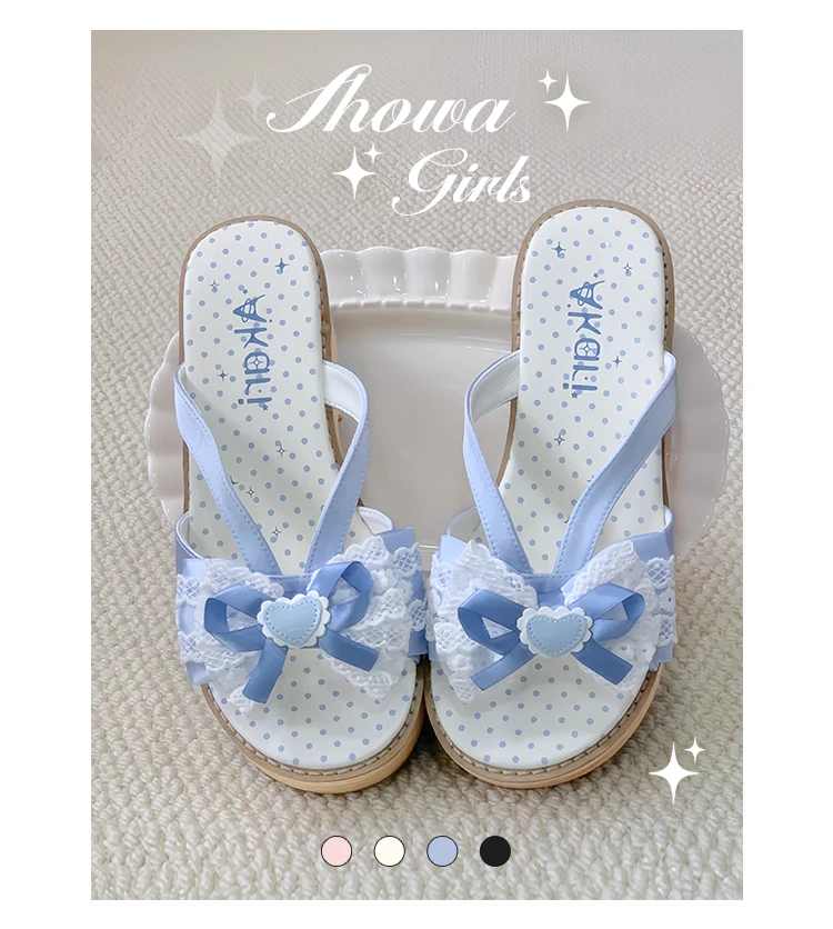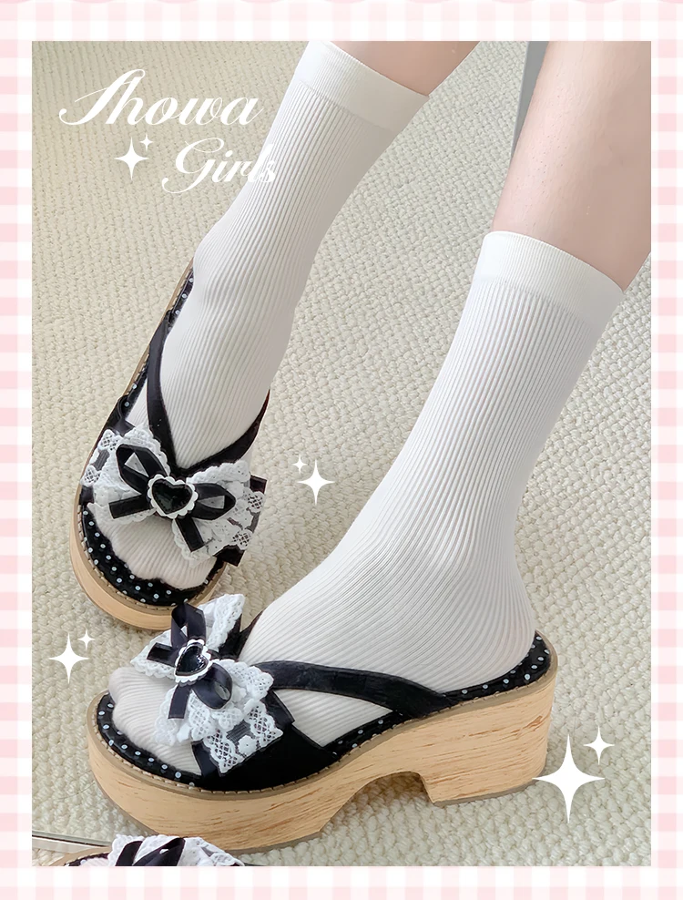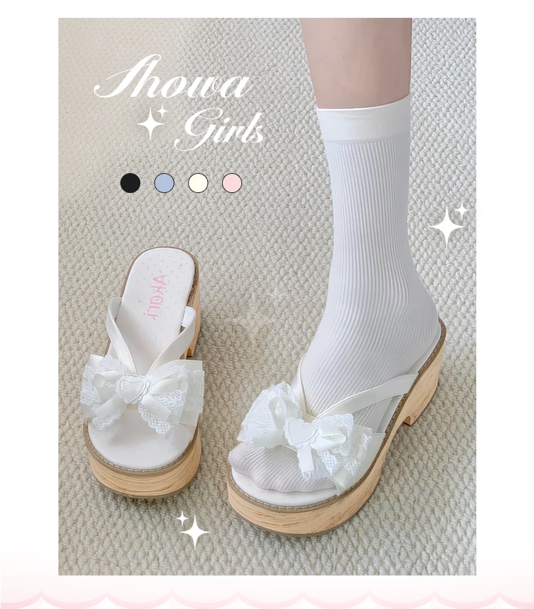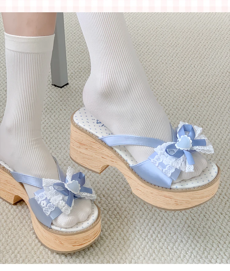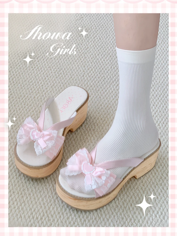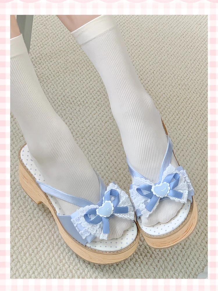 Sandali Lolita Scarpe Pantofole con zeppa con zeppa Innalzamento Versione con fiocco Kawaii Zoccoli Scarpe Ragazze Cos Tacchi per donne giapponesi