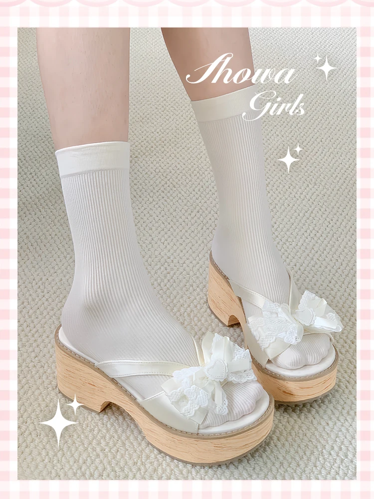 Calzini per donna stile coreano nuovi calzini sottili Sweet Lolita tinta unita carino fiocco traspirante calzini lunghi moda giapponese maglia femminile