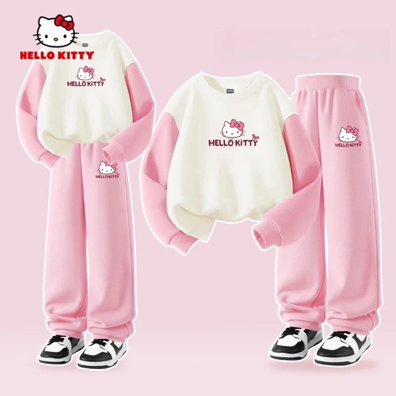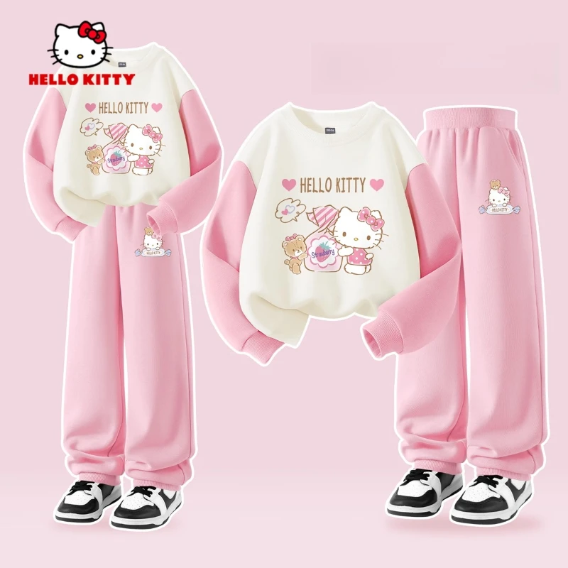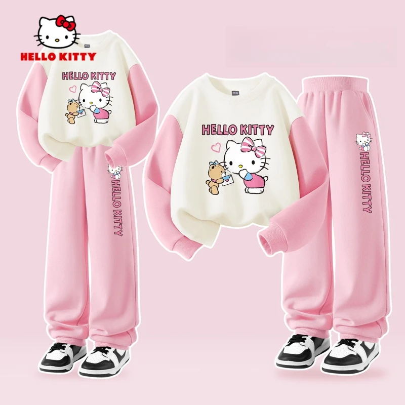 Sanrio Autunno Neonate Vestiti Set Kid Hello Kitty Stampato Felpe Pullover Top e Pantaloni 2 pezzi Bambini Patchwork Tuta