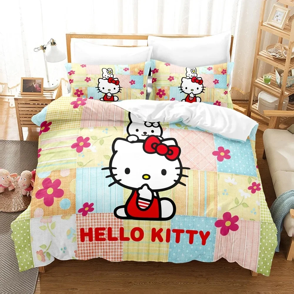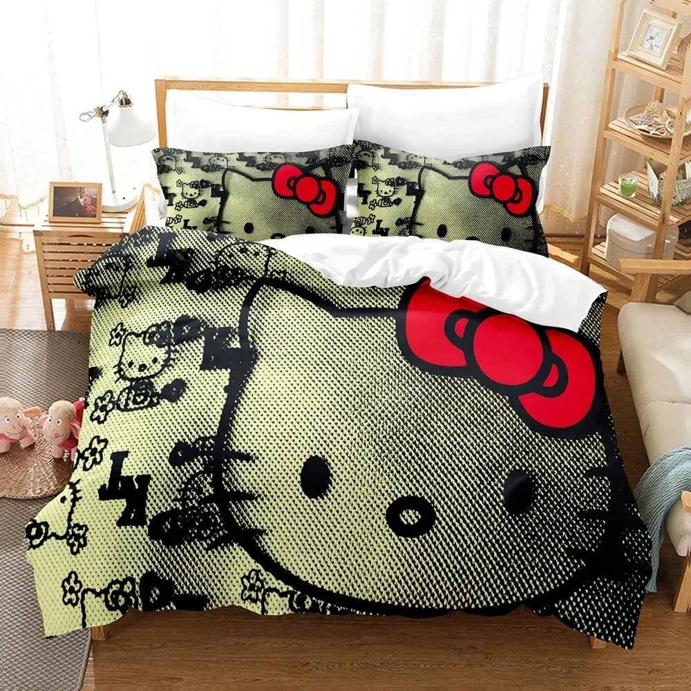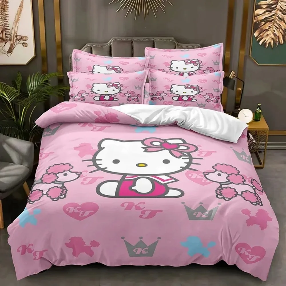 Sanrio Hello Kitty Cartoon Set biancheria da letto di grandi dimensioni Gatti rosa Copripiumino Kawaii per ragazza Bambini Decorazioni singole Biancheria da letto per la casa Personalizzata