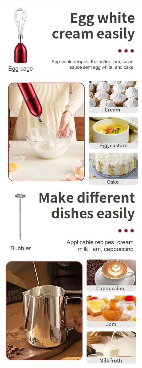 Frullatore portatile multifunzionale: il kit frullatore portatile ad immersione Allelin include asta frullatore, frusta per uova in acciaio inossidabile, montalatte, perfetto per preparare alimenti per bambini, frullati, zuppe, maionese, meringue, chutney, salse, pastelle crepe ecc.