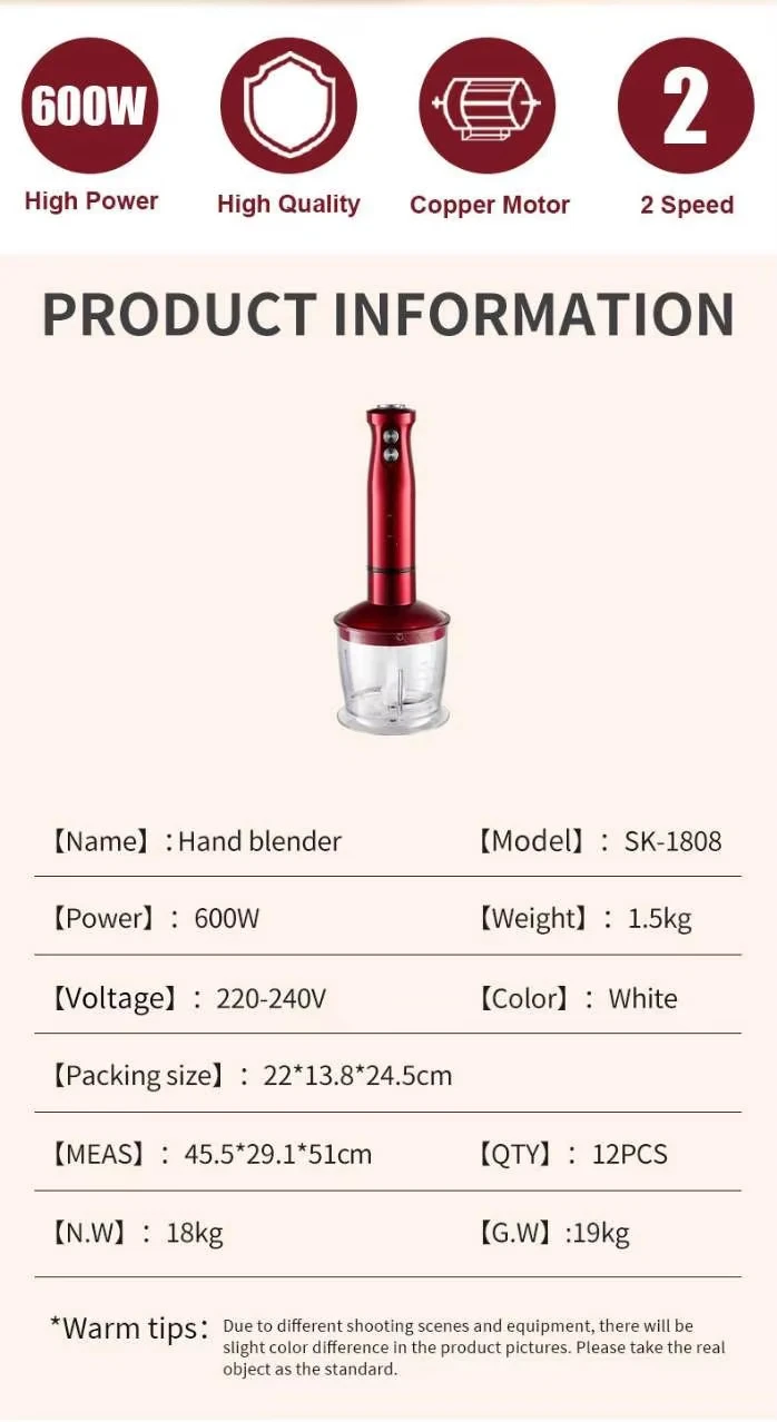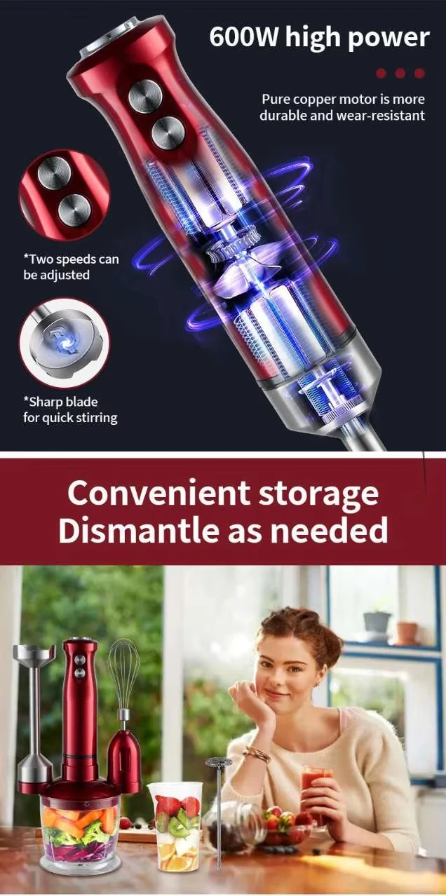 Lama placcata in titanio e motore completamente in rame: il potente motore con nucleo in rame per carichi pesanti da 600 W offre un’elaborazione perfetta per il frullatore elettrico a immersione in pochi secondi.L’albero affilato della lama a 4 punte placcato in titanio integrato ti aiuta a sbattere e tritare in pochi secondi, quindi a sfumare e ridurre in purea in meno tempo