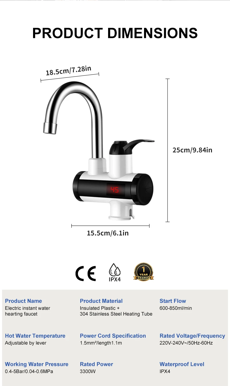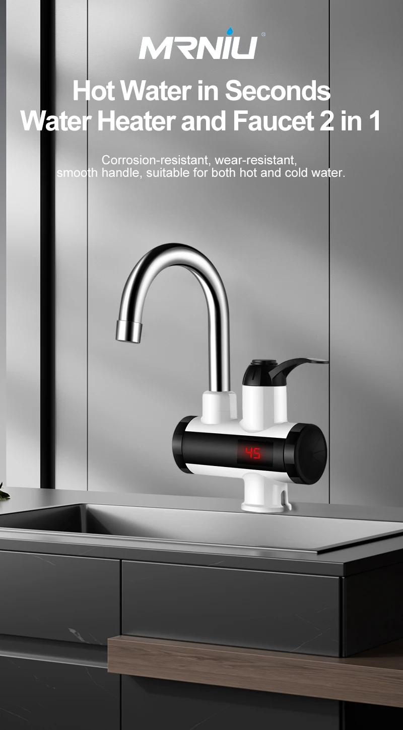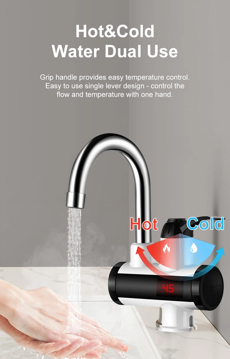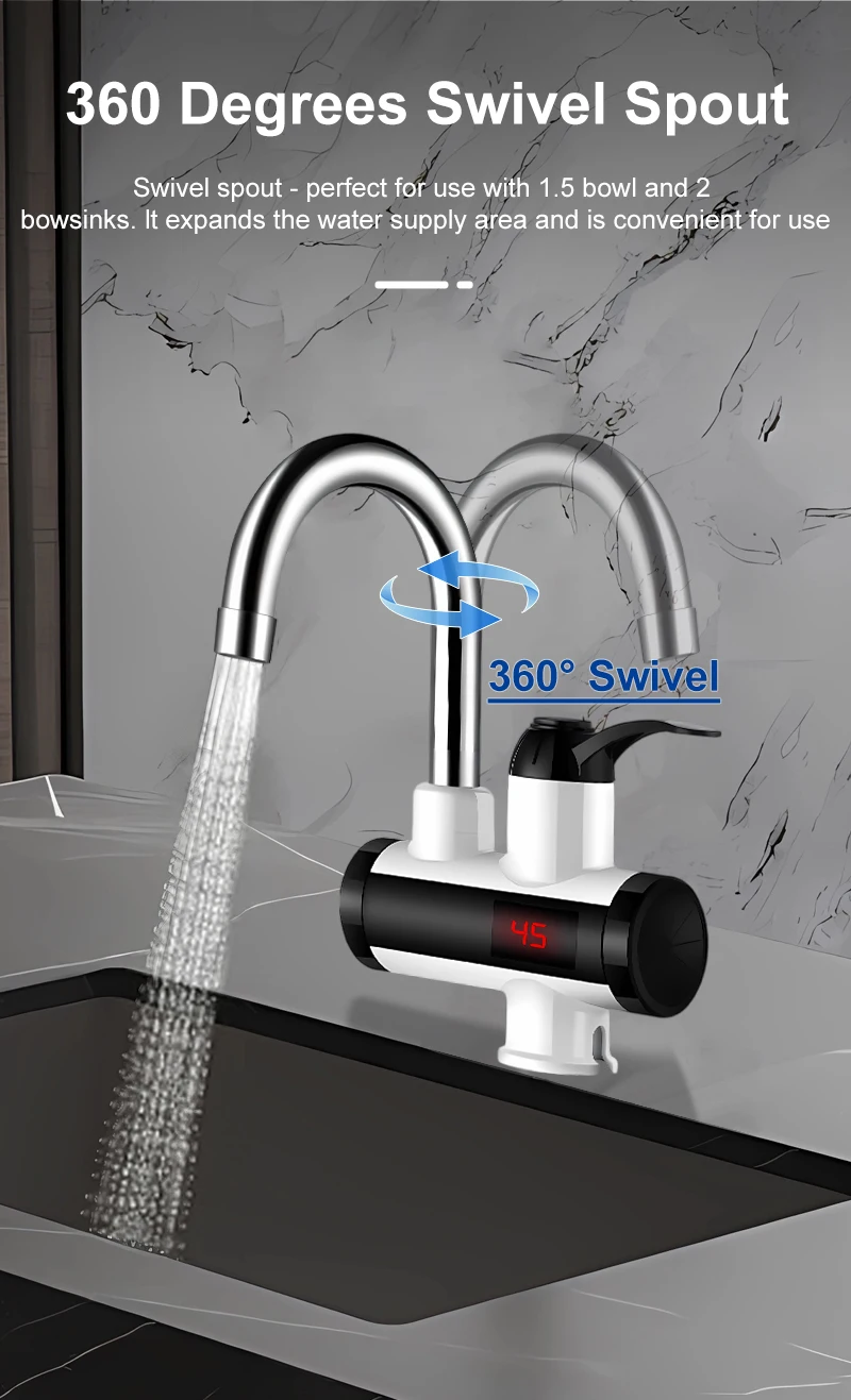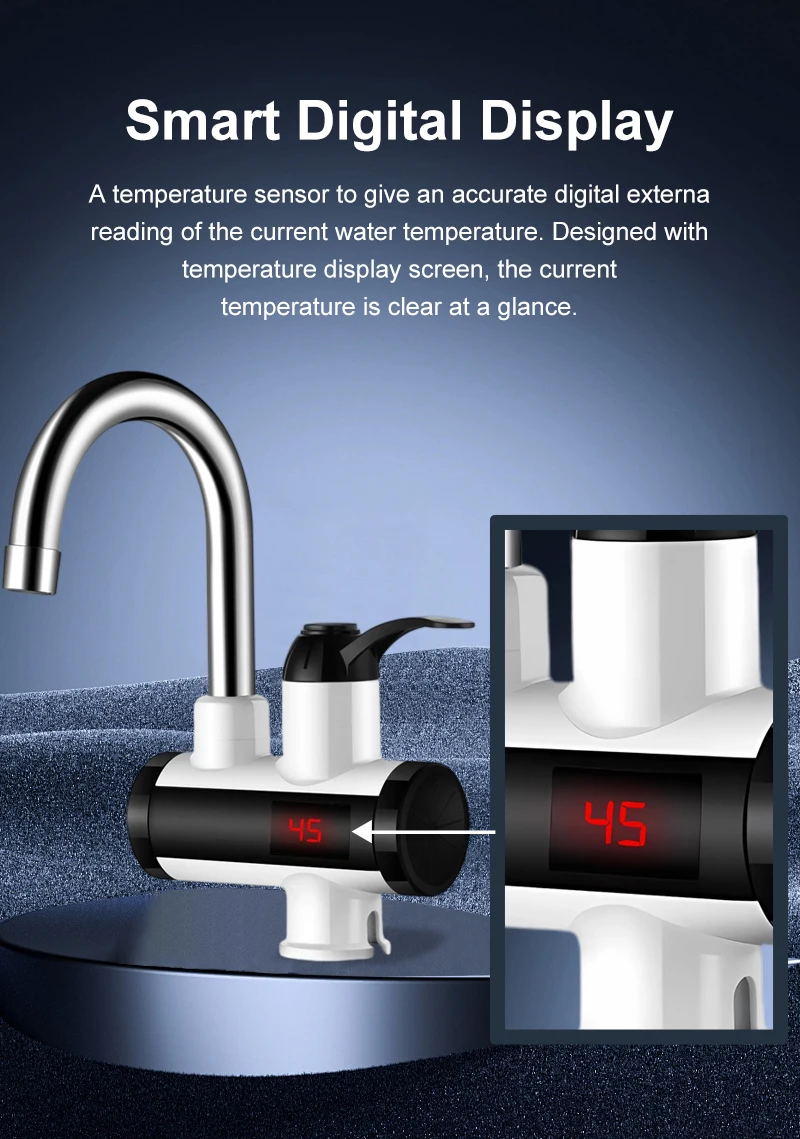 Scaldabagno elettrico 220V Rubinetto della cucina Riscaldamento istantaneo senza serbatoio Rubinetto dell’acqua che scorre Miscelatore riscaldato Display digitale per sotto il lavelloDisponibilità: 5 disponibili