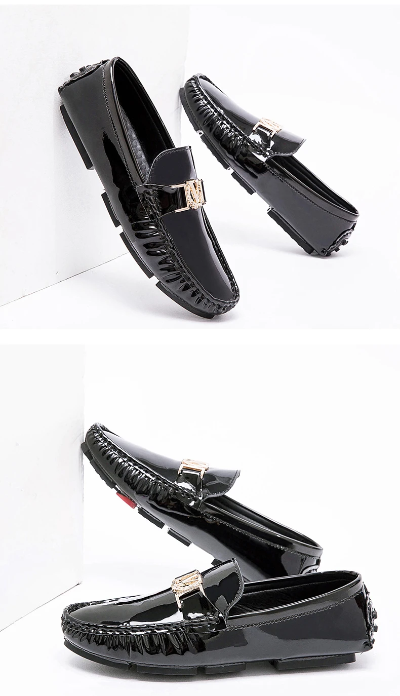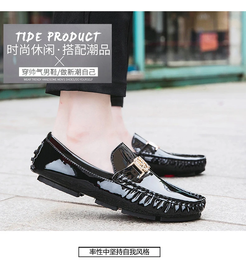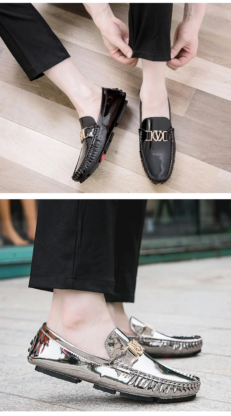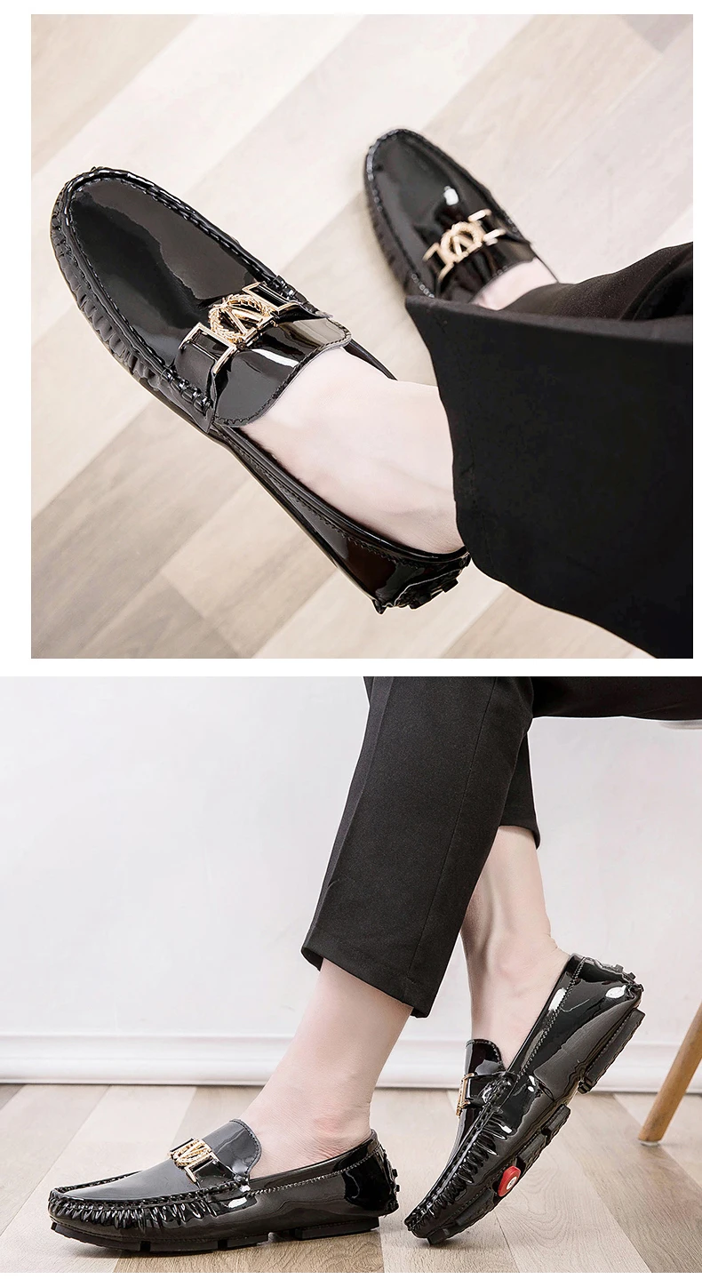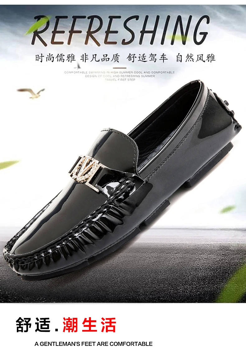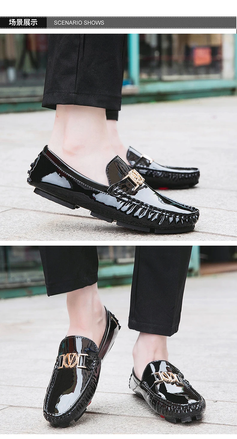 Scarpe a cuffia da uomo, scarpe slip-on primaverili ed estive, scarpe da uomo alla moda in pelle verniciata stile coreano, scarpe pigre basse, scarpe casual, fatte a mano