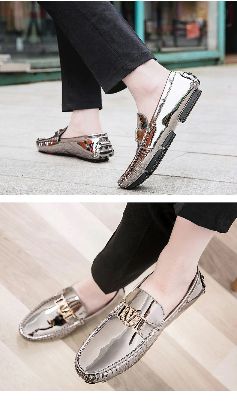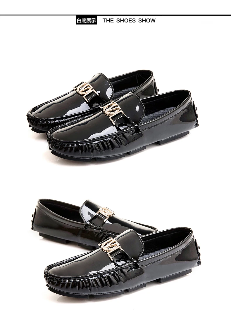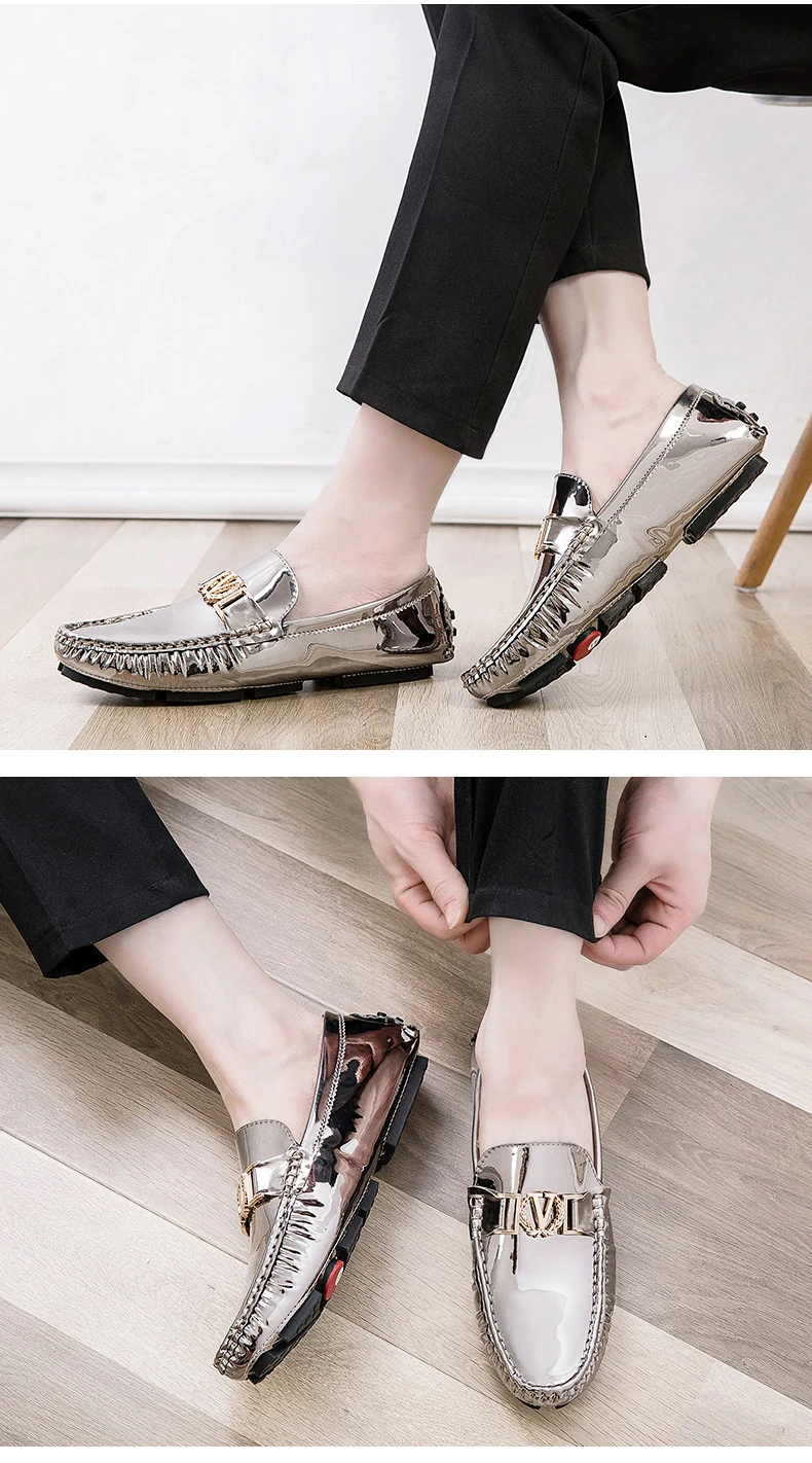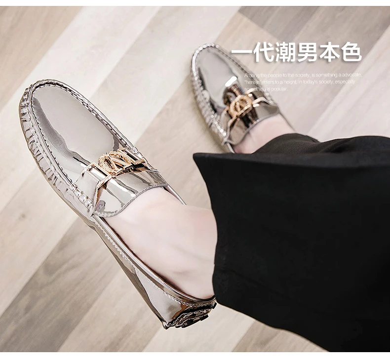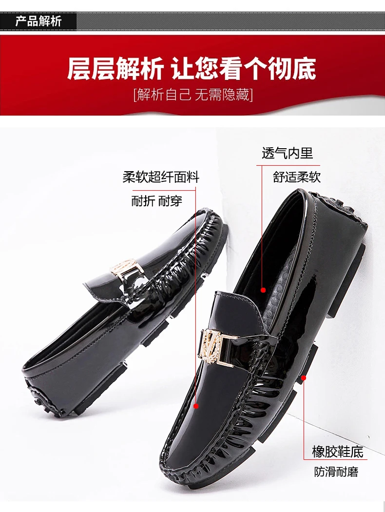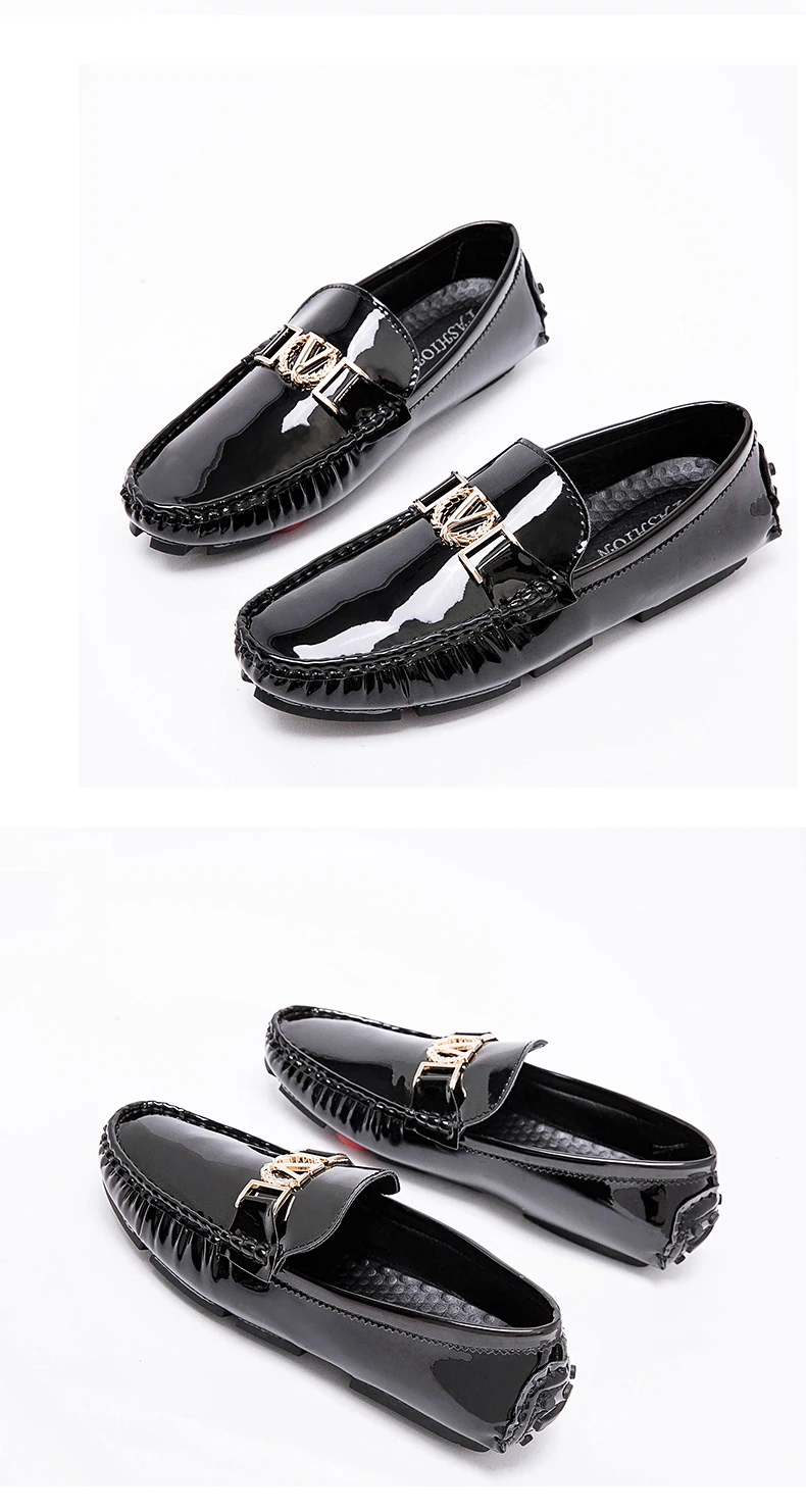 Scarpe a cuffia da uomo, scarpe slip-on primaverili ed estive, scarpe da uomo alla moda in pelle verniciata stile coreano, scarpe pigre basse, scarpe casual, fatte a mano