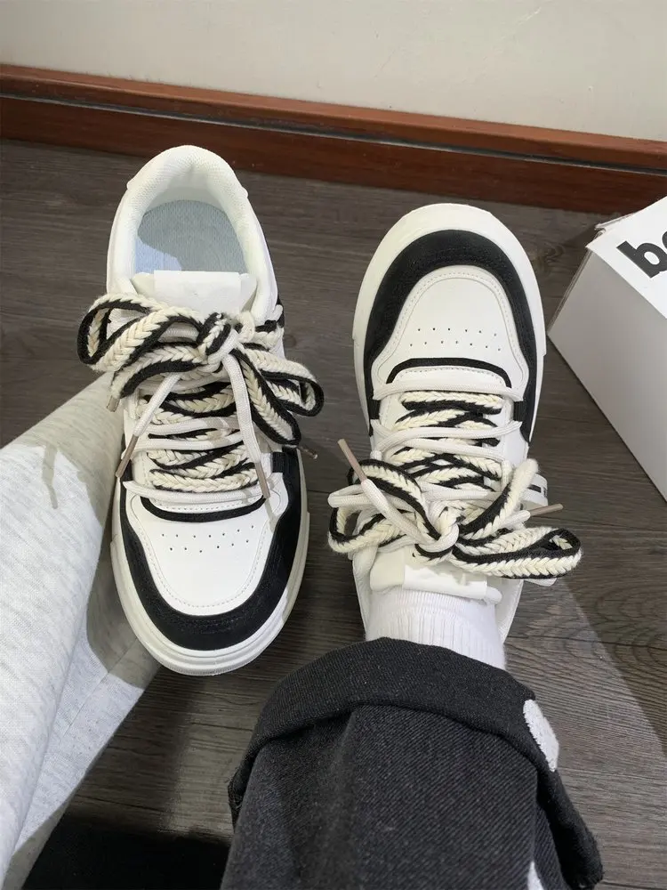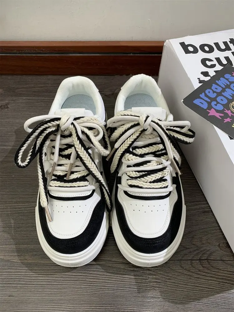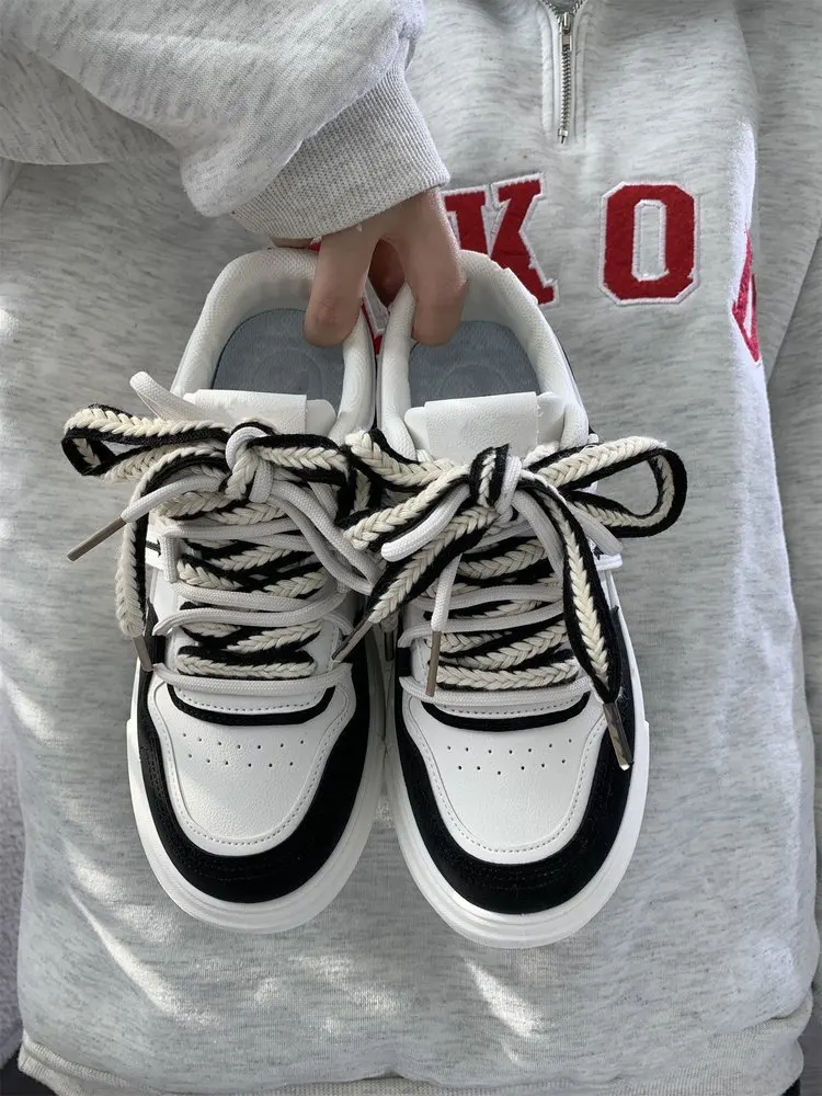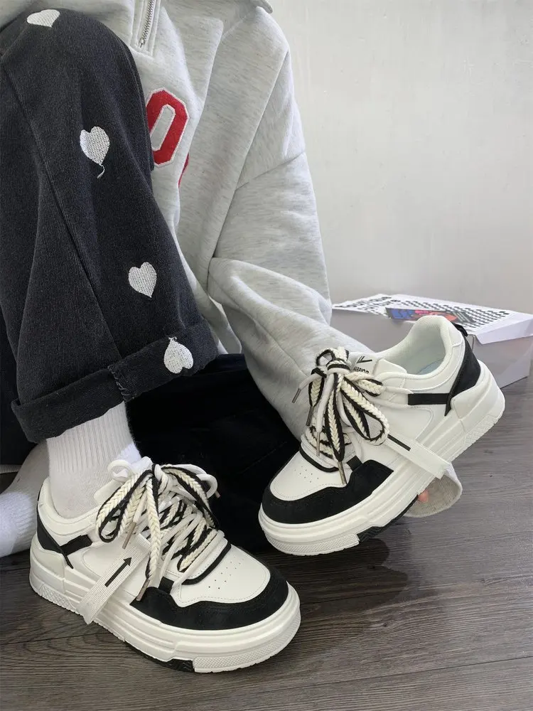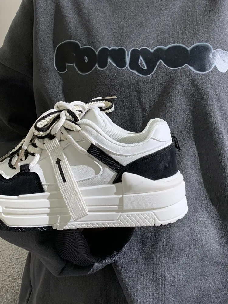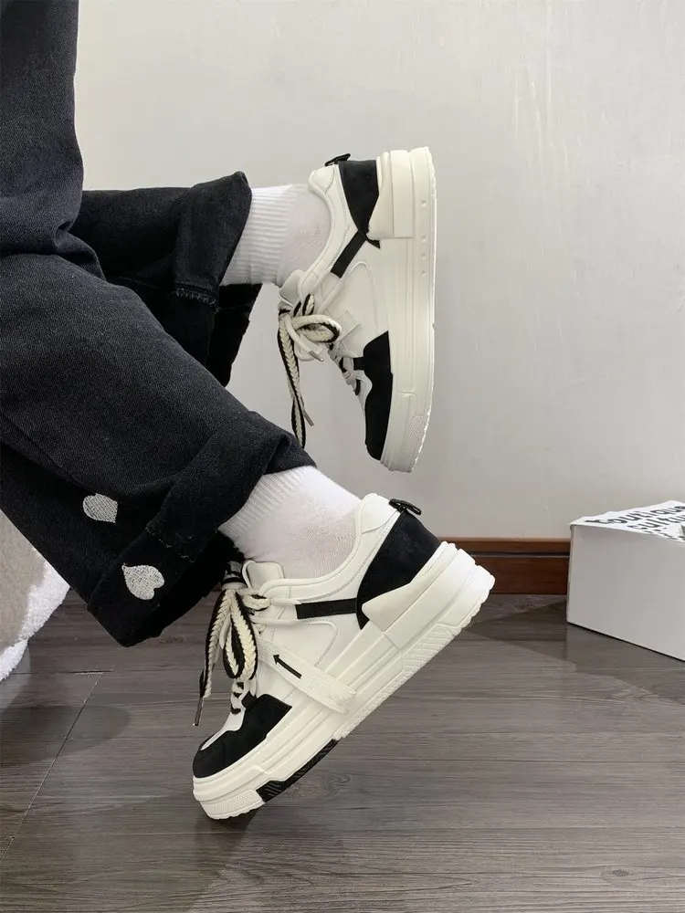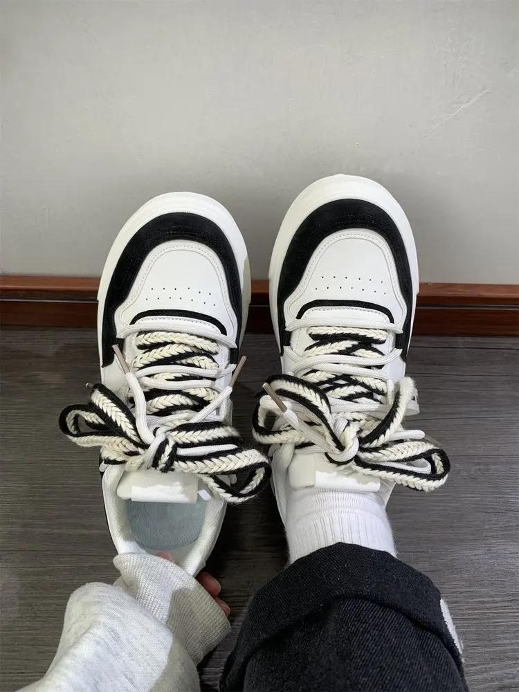 Scarpe alte abbinate ai colori per studentesse nere Scarpe calde in stile coreano nell’autunno e nell’inverno 2024