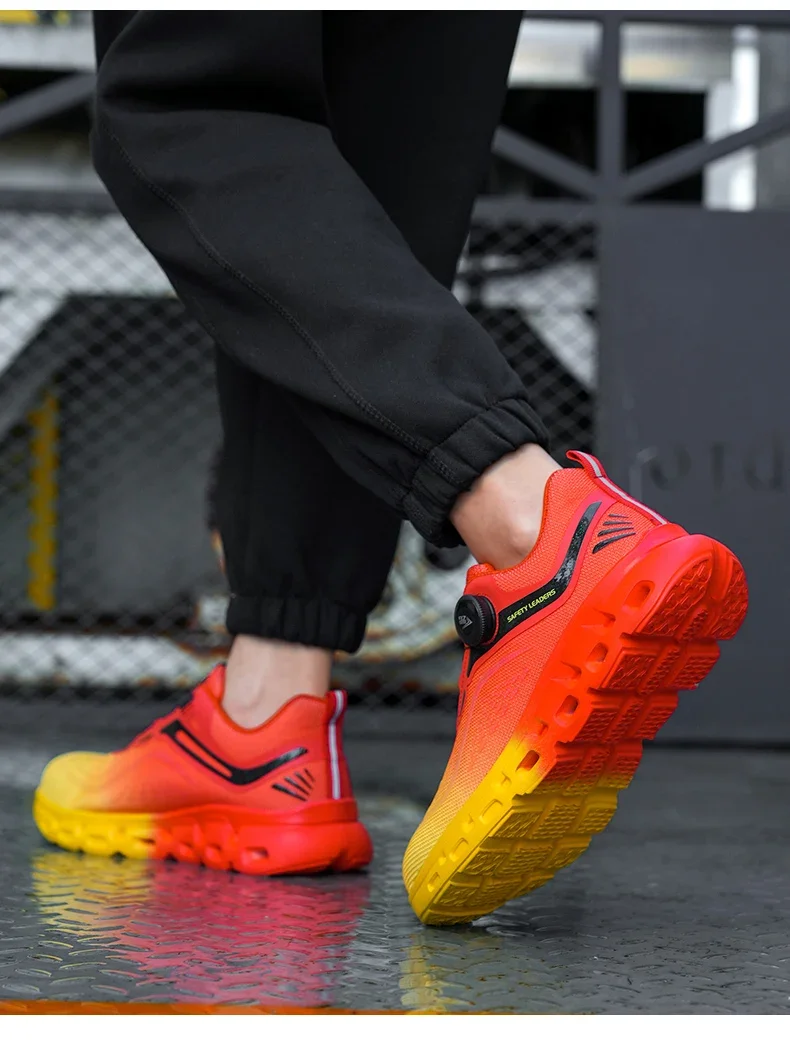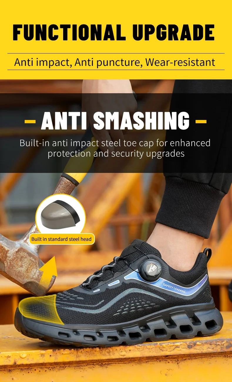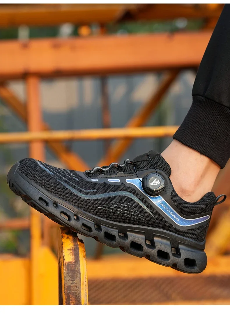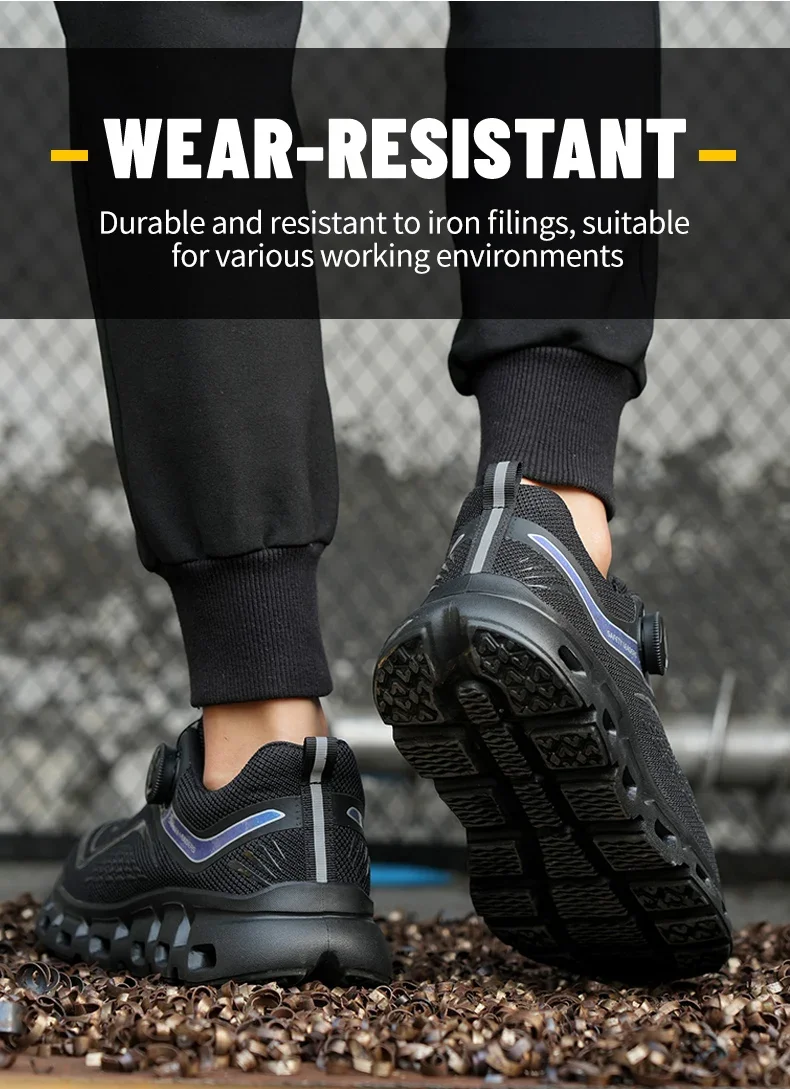 Scarpe antinfortunistiche da lavoro da uomo con bottone rotante alla moda Scarpe da ginnastica con puntale in acciaio a prova di foratura Stivali protettivi indistruttibili da uomo