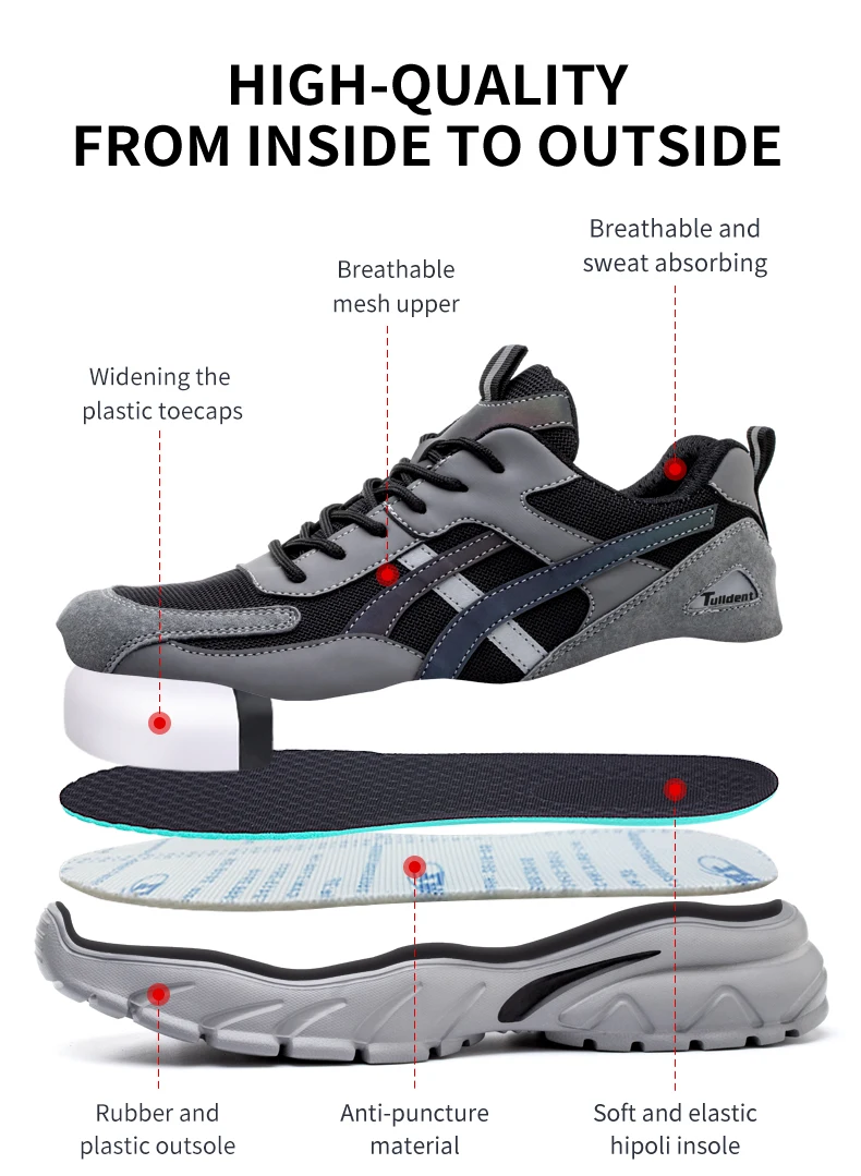 Scarpe antinfortunistiche Stivali da uomo Donna Puntale in plastica Sport Snekers A prova di puntura A prova di crash Leggero Resistente all’usura Qualità industriale