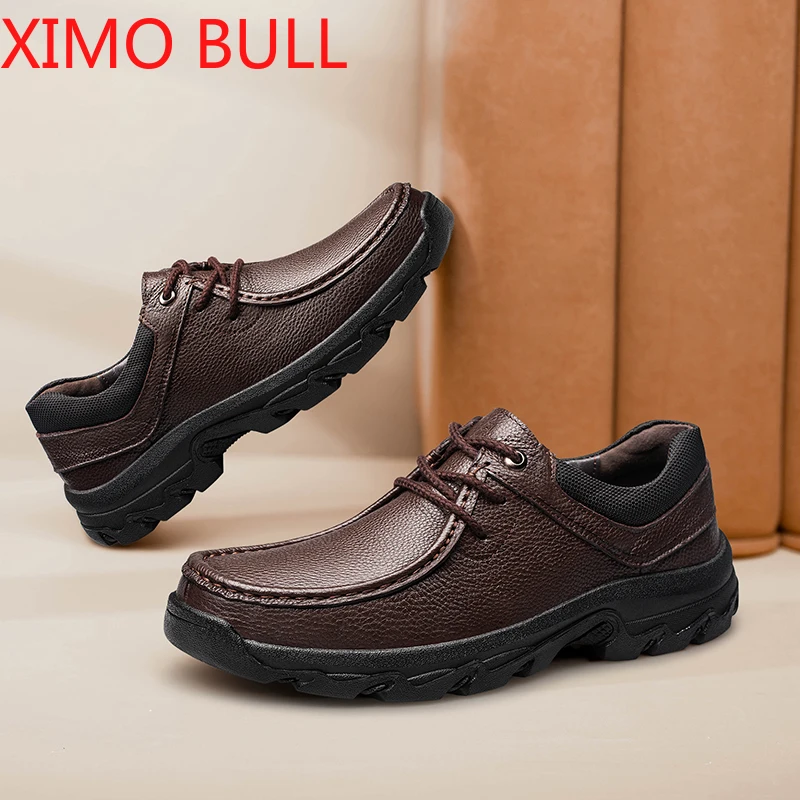 Scarpe casual in vera pelle da uomo nuove in stile lusso 2025 Mocassini leggeri con lacci con suola morbida per persone di mezza età per anziani