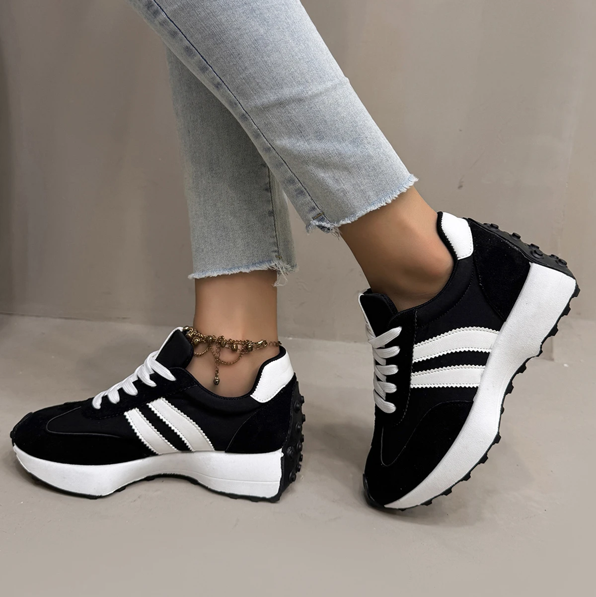 Scarpe casual stringate eleganti di nuovo stile alla moda da donna primavera/autunno punta tonda suola spessa scarpe sportive comode antiscivolo