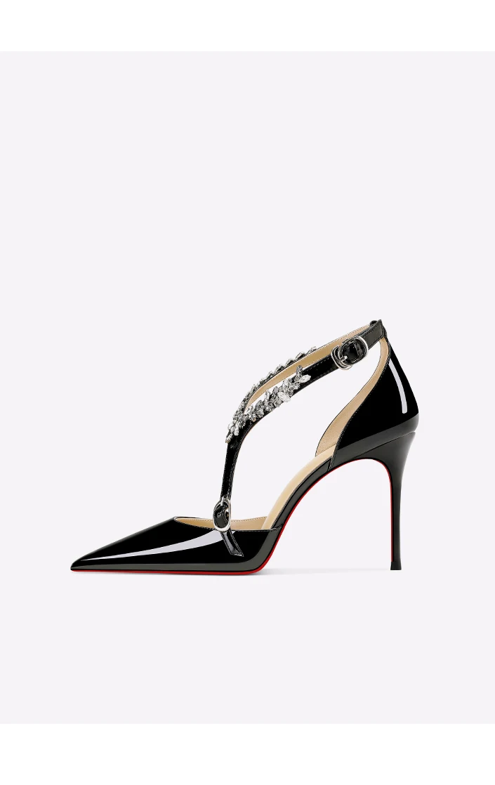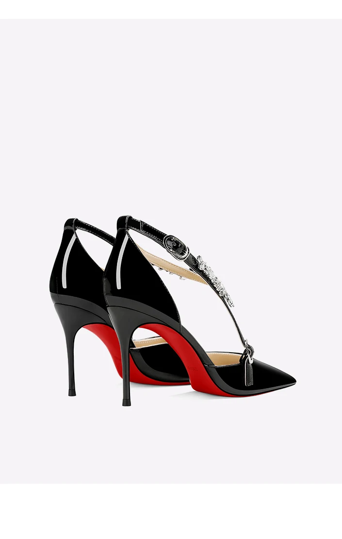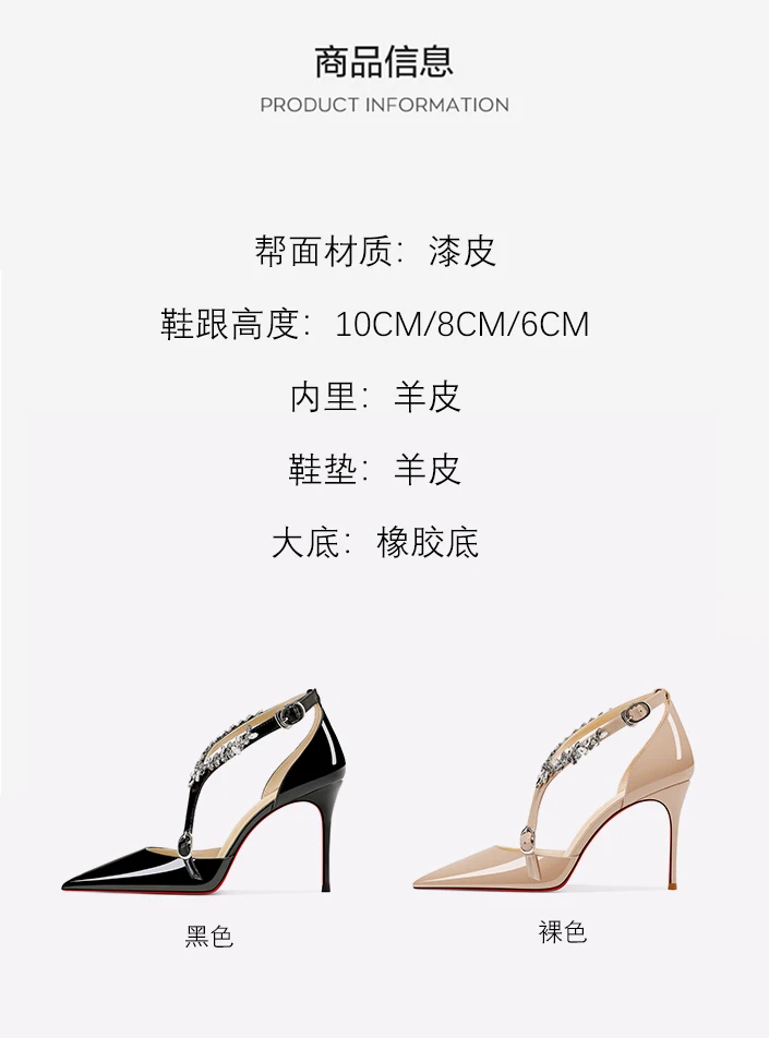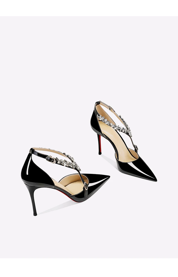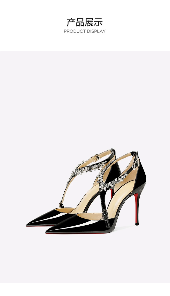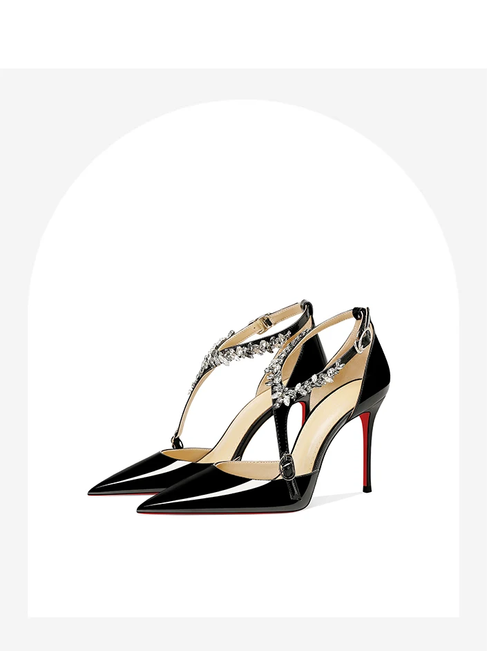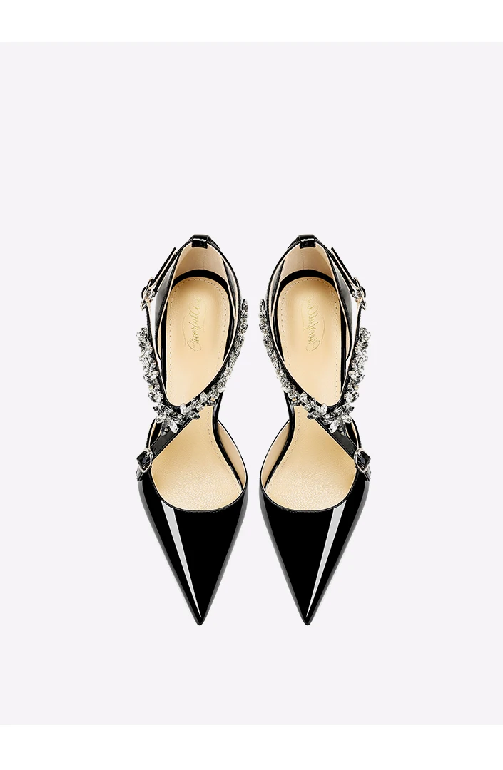 Scarpe col tacco alto con strass neri da donna 2025 nuovo stile estivo sandali sexy con cinturino con fibbia dritta e tacco sottile a punta