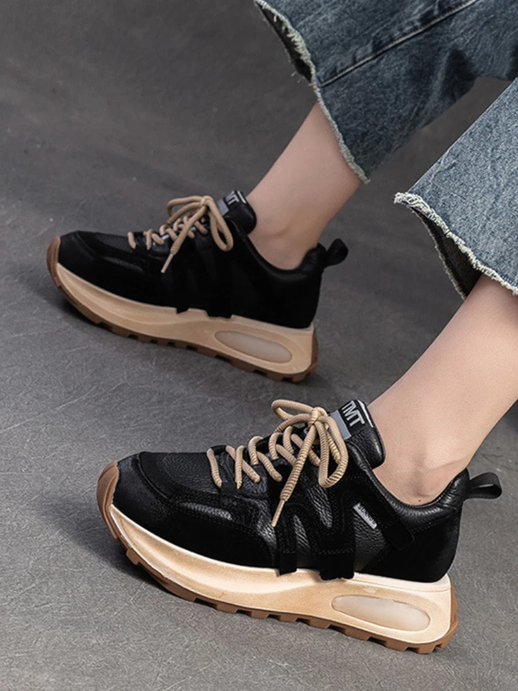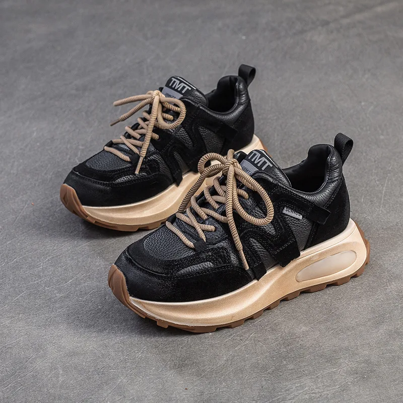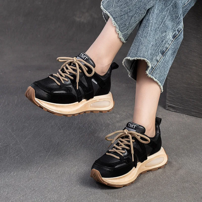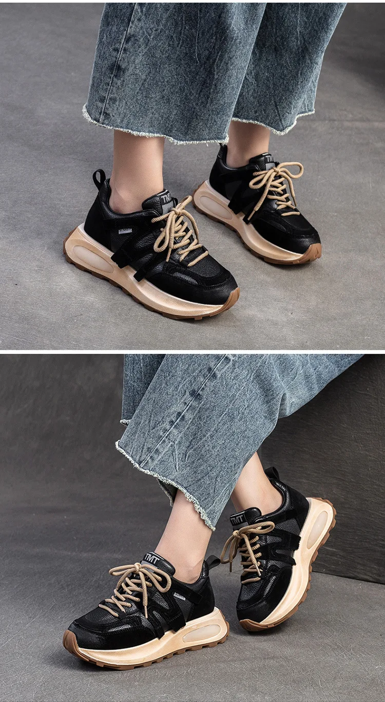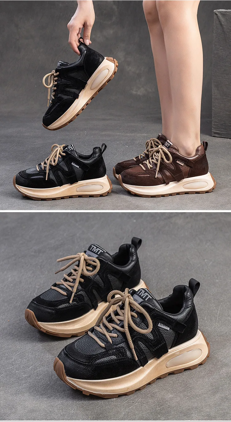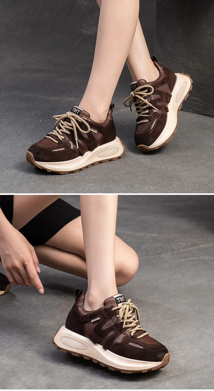 Scarpe comode da donna in vera pelle scamosciata di mucca da 3,5 cm Primavera Gomma Autunno Mocassini con zeppa con plateau Scarpe da ginnastica robuste Vulcanize