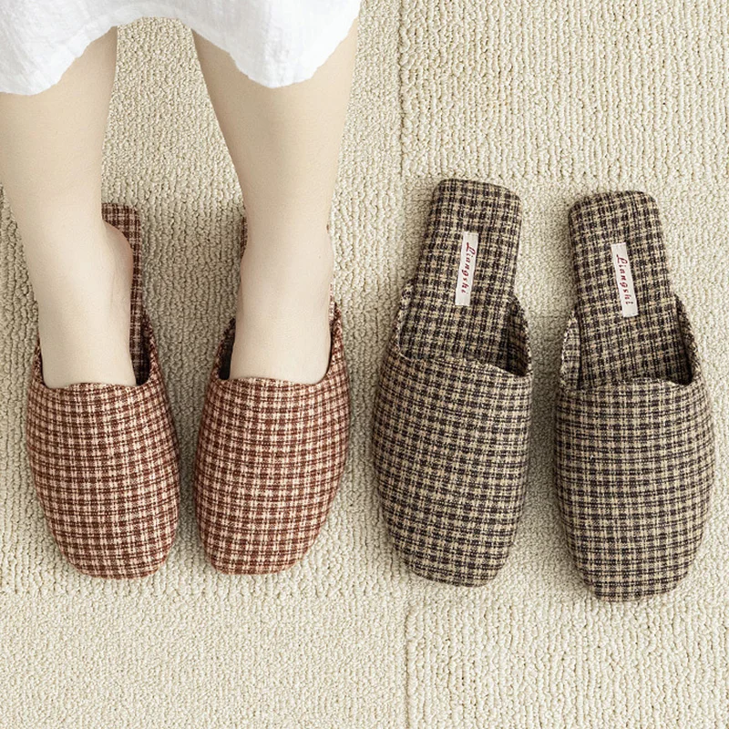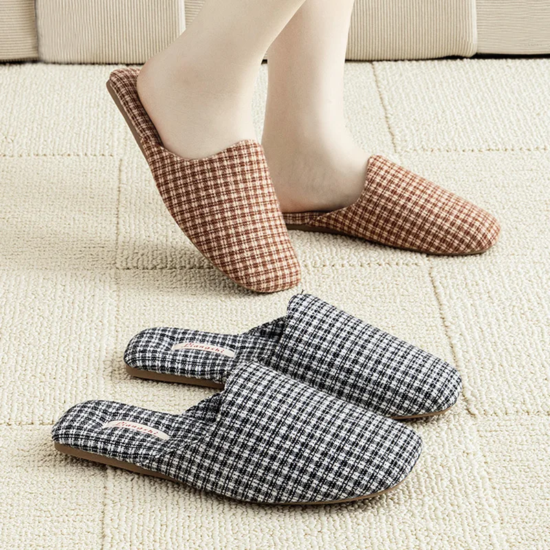 Scarpe da casa per interni autunnali e invernali, classiche pantofole scozzesi retrò, scarpe da uomo e da donna antiscivolo, traspiranti e comode