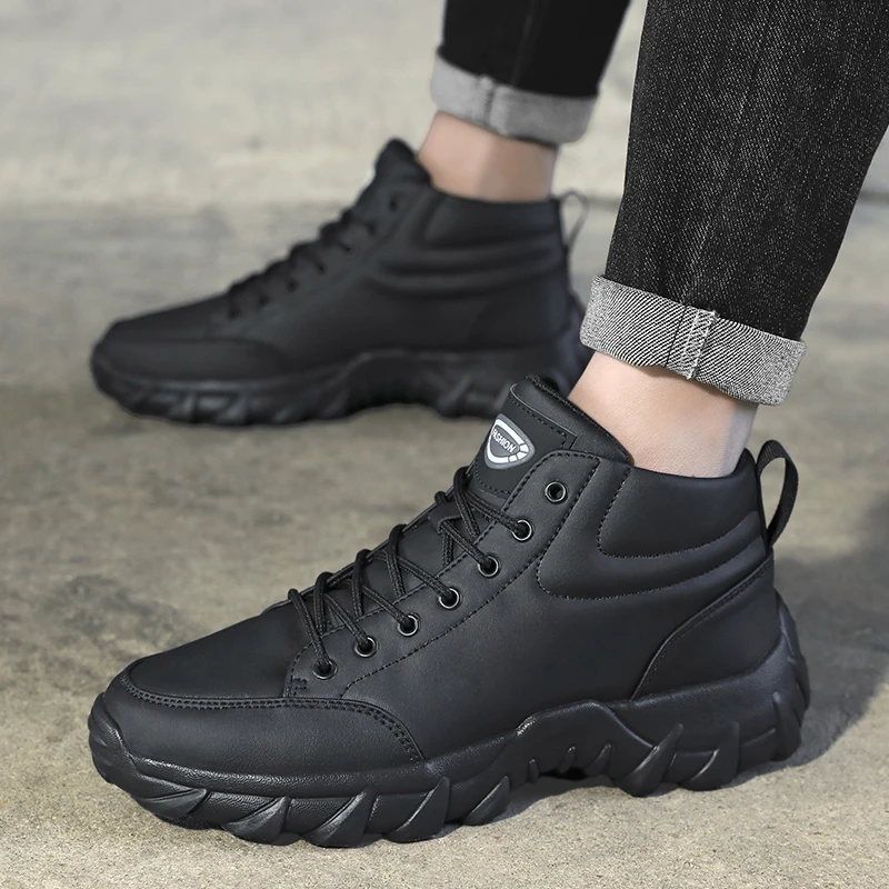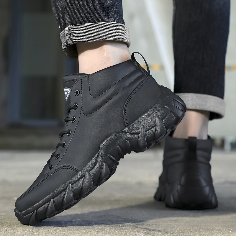 Scarpe da corsa da uomo Sneakers da uomo Stivaletti casual in pelle fatti a mano antiscivolo Stivali leggeri da passeggio con lacci da uomo traspiranti