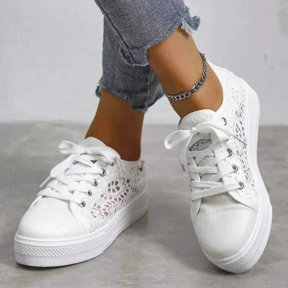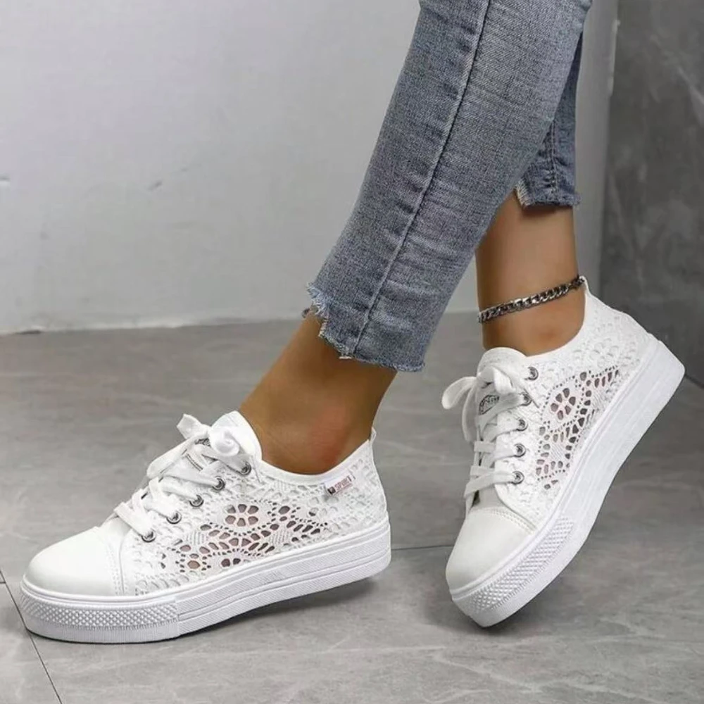 Scarpe da donna Moda Estate Casual Scarpe bianche Ritagli Tela di pizzo Scarpe basse con plateau traspirante cava Scarpe da ginnastica da donna