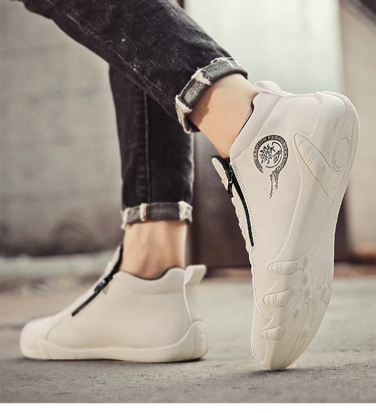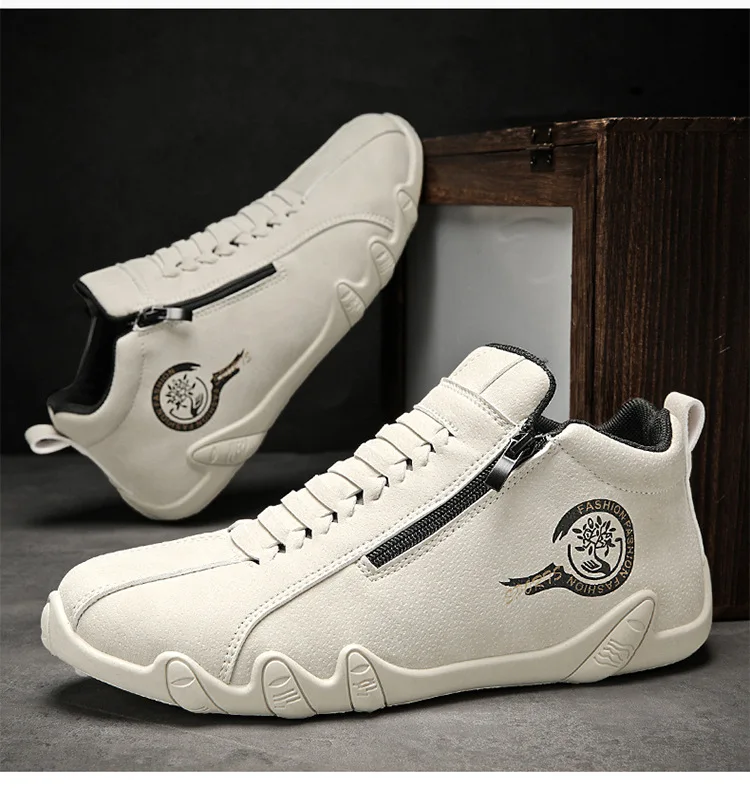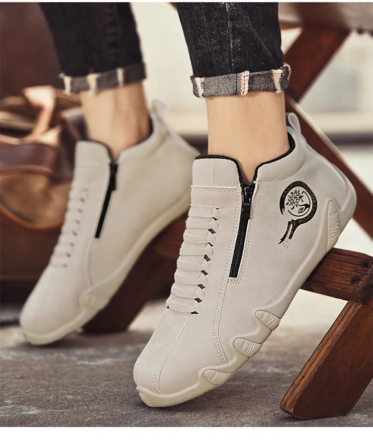 Scarpe da ginnastica casual da uomo Comfort Uomo Inverno Scarpe casual in pelle di nuova moda Scarpe da corsa alte con cerniera slip-on da uomo Scarpe antiscivolo