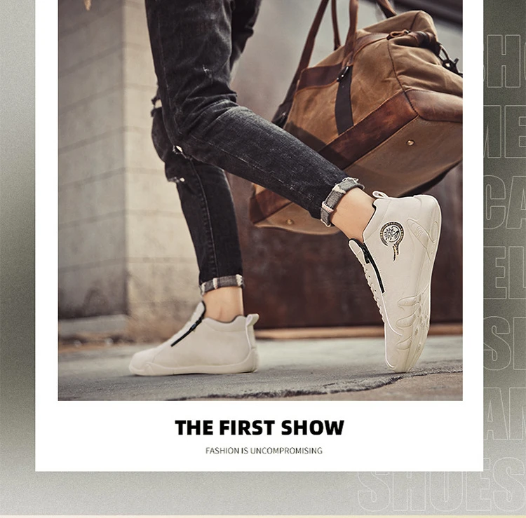 4 recensioni per Scarpe da ginnastica casual da uomo Comfort Uomo Inverno Scarpe casual in pelle di nuova moda Scarpe da corsa alte con cerniera slip-on da uomo Scarpe antiscivolo