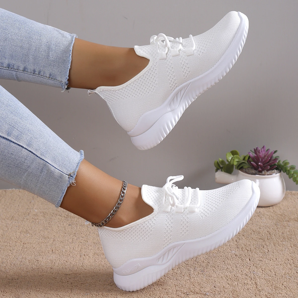 Scarpe da ginnastica da donna Moda con lacci in mesh traspirante da passeggio all’aperto Piccole scarpe bianche Punta tonda Scarpe da tennis con suola spessa antiscivolo Mujer