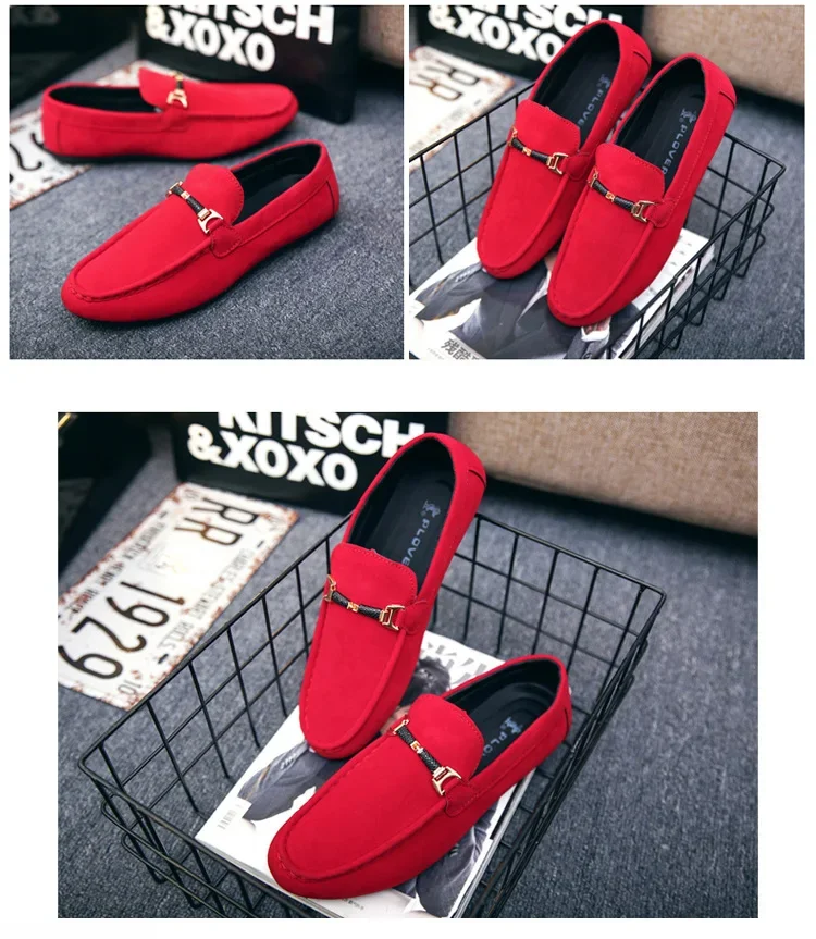 Scarpe da ginnastica da uomo Scarpe basse Scarpe casual Mocassini rossi Tacchetti con finiture in metallo Mocassino da guida per adulti Morbido e confortevole