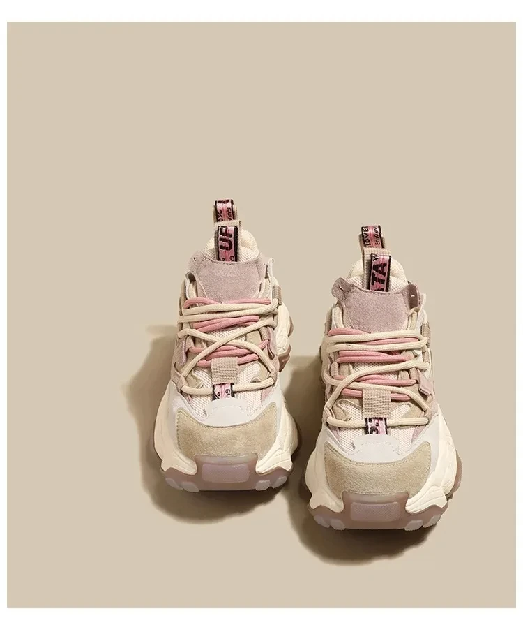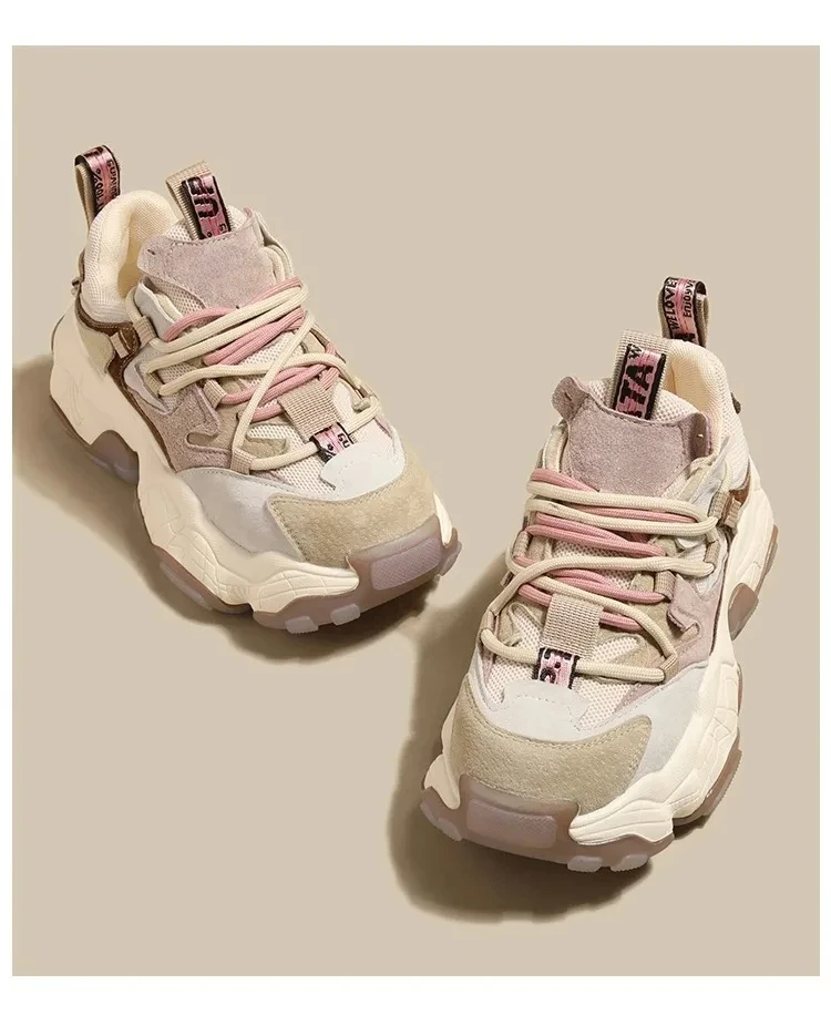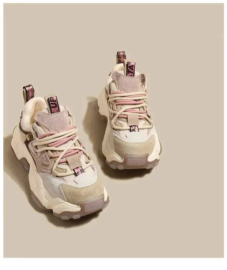 Scarpe da papà in pelle con plateau alla moda che aumentano l’altezza per le donne autunno inverno scarpe da ginnastica Casual con suola spessa