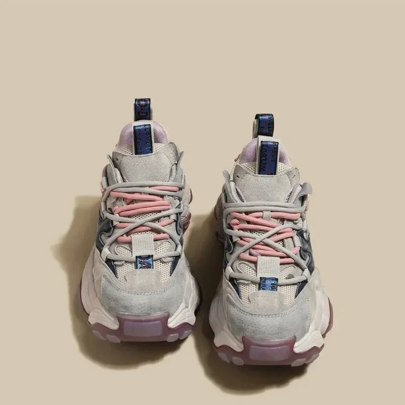 Scarpe da papà in pelle con plateau alla moda che aumentano l’altezza per le donne autunno inverno scarpe da ginnastica Casual con suola spessa