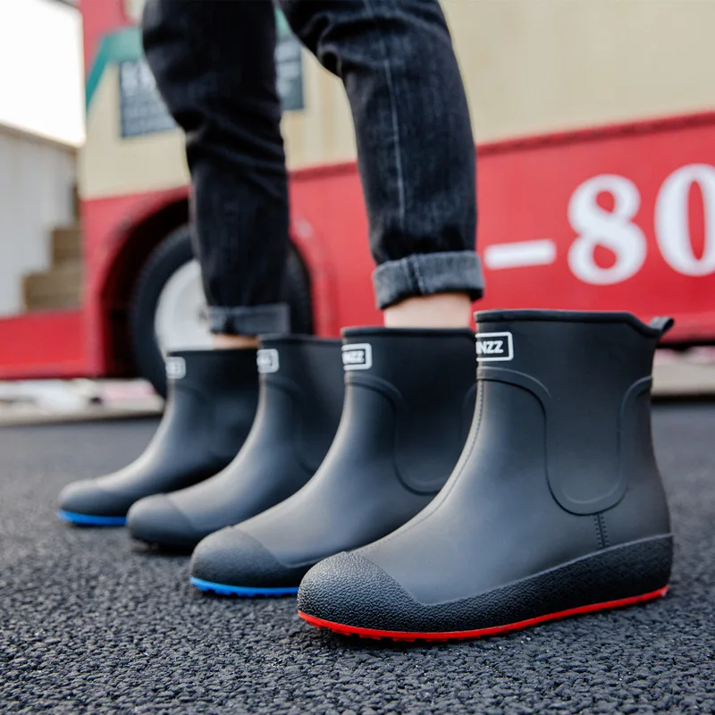 Scarpe da pioggia antiscivolo tedesche da uomo Stivali da pioggia caldi a metà polpaccio più scarpe impermeabili in velluto Scarpe da cucina Scarpe da pesca per autolavaggio da donna